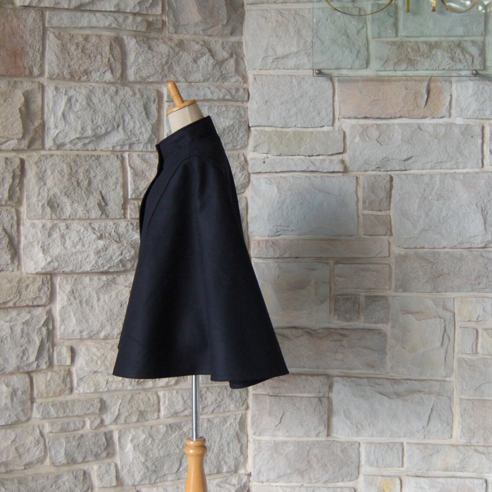 【 エレガント スタンドカラー ケープコート 】 ブラックの表生地×ジヴェルニーの庭柄の裏地 しっかりした張り
