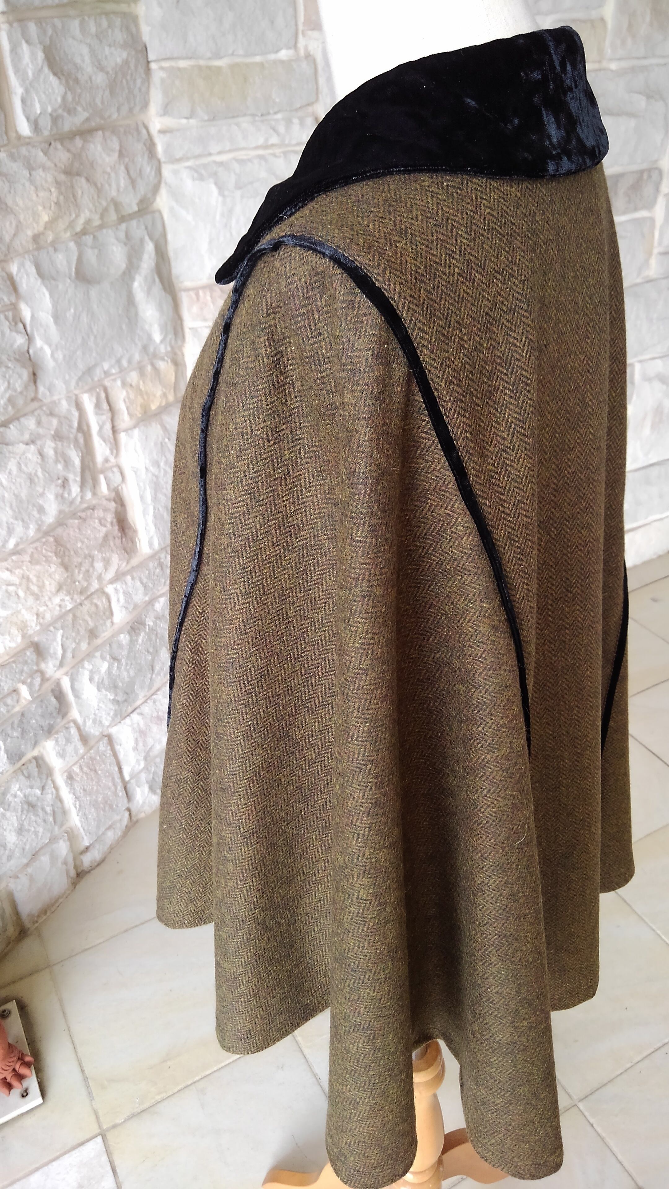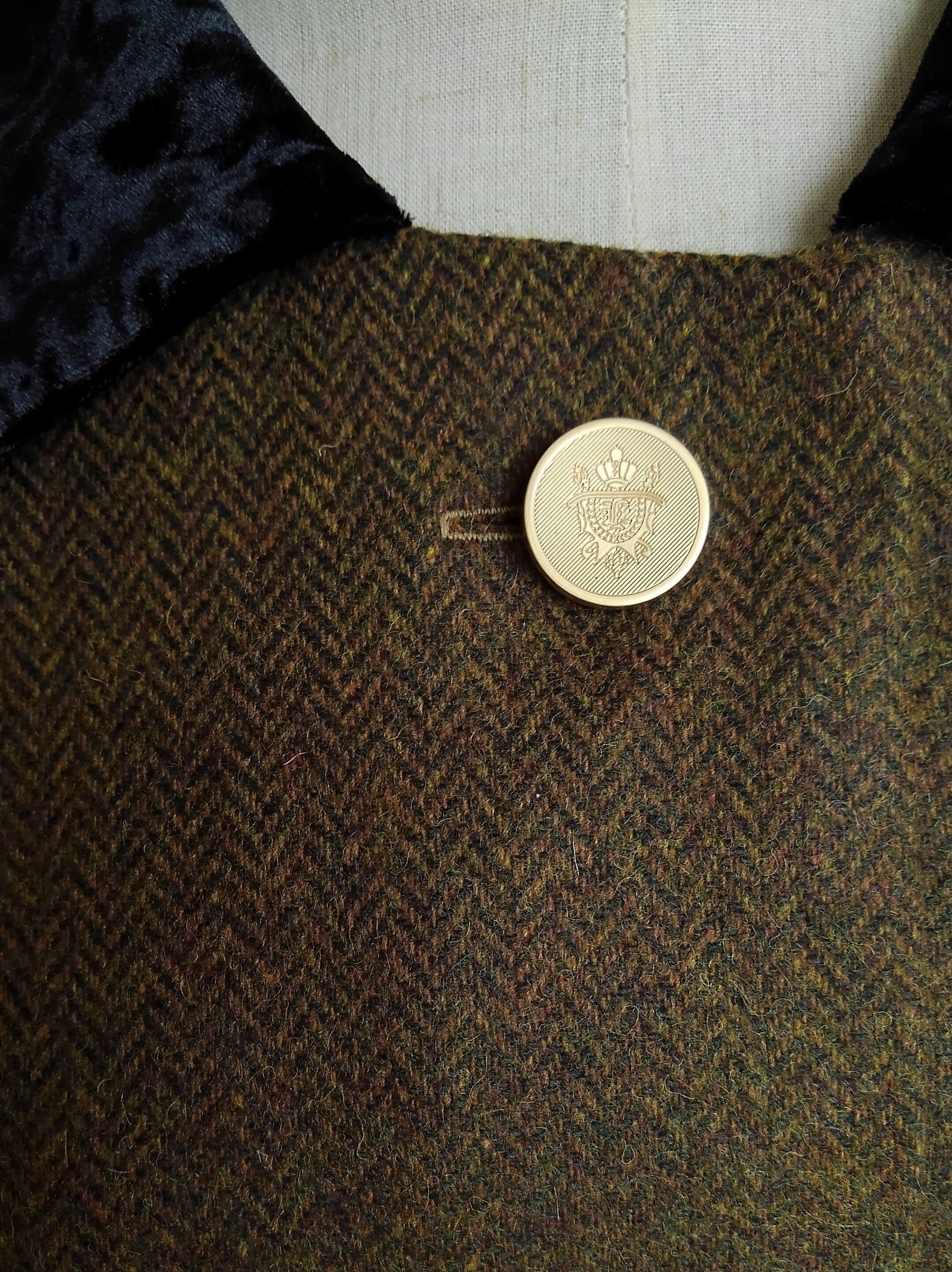 メインは、カーキと茶系のお色味の、繊細なヘリンボーン柄。