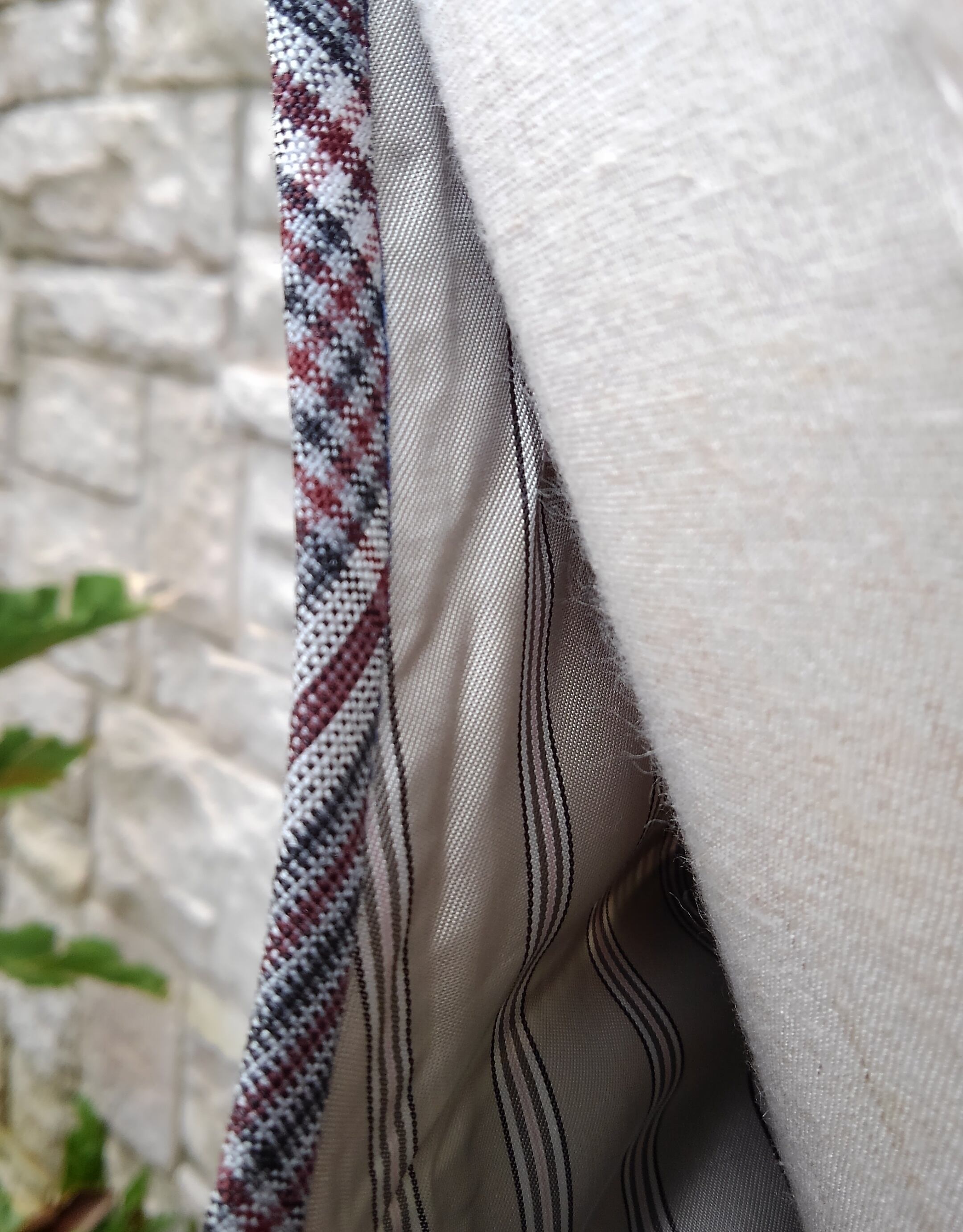 落ち着きと品のあるグレンチェック生地と、紺の生地を合わせて