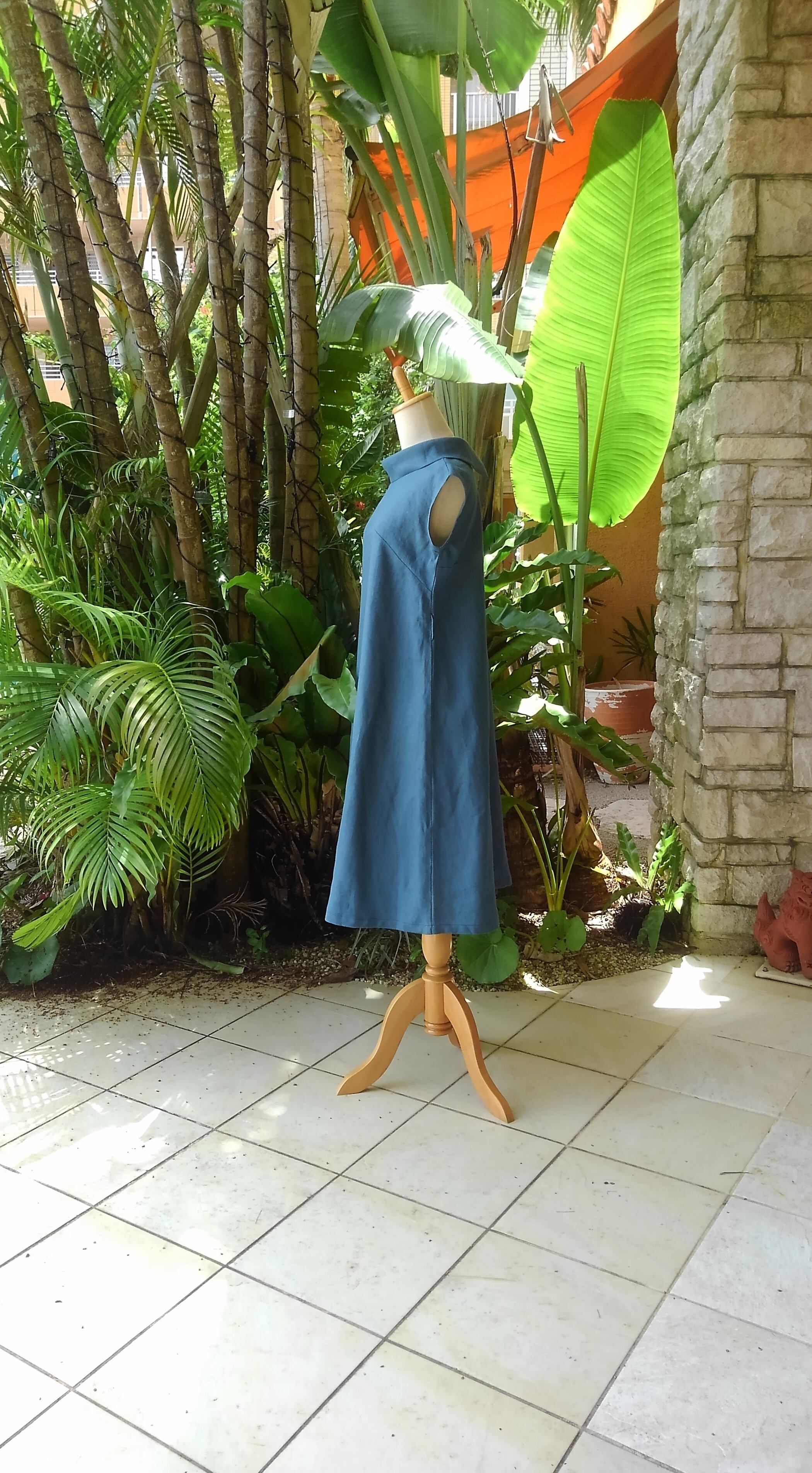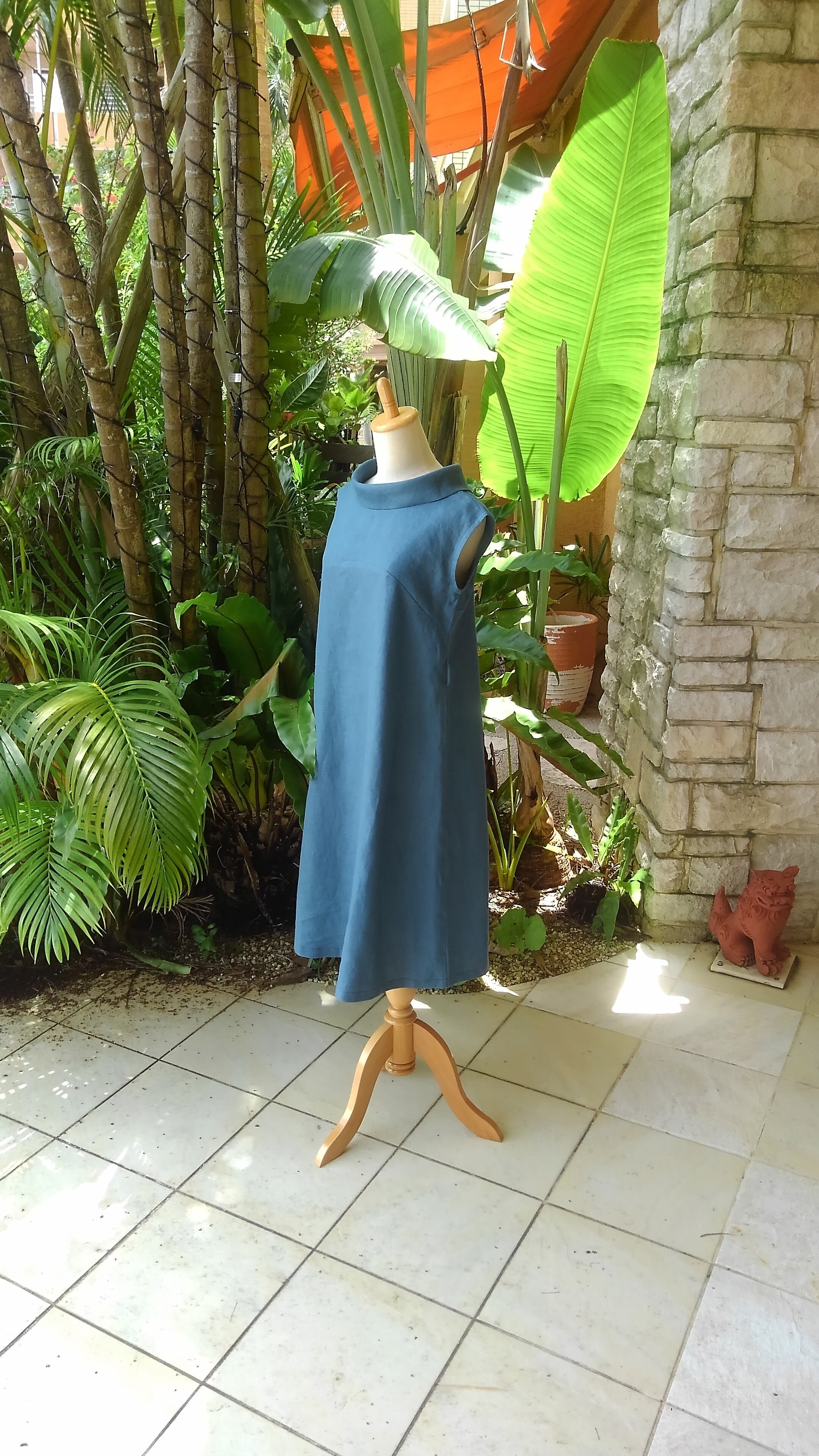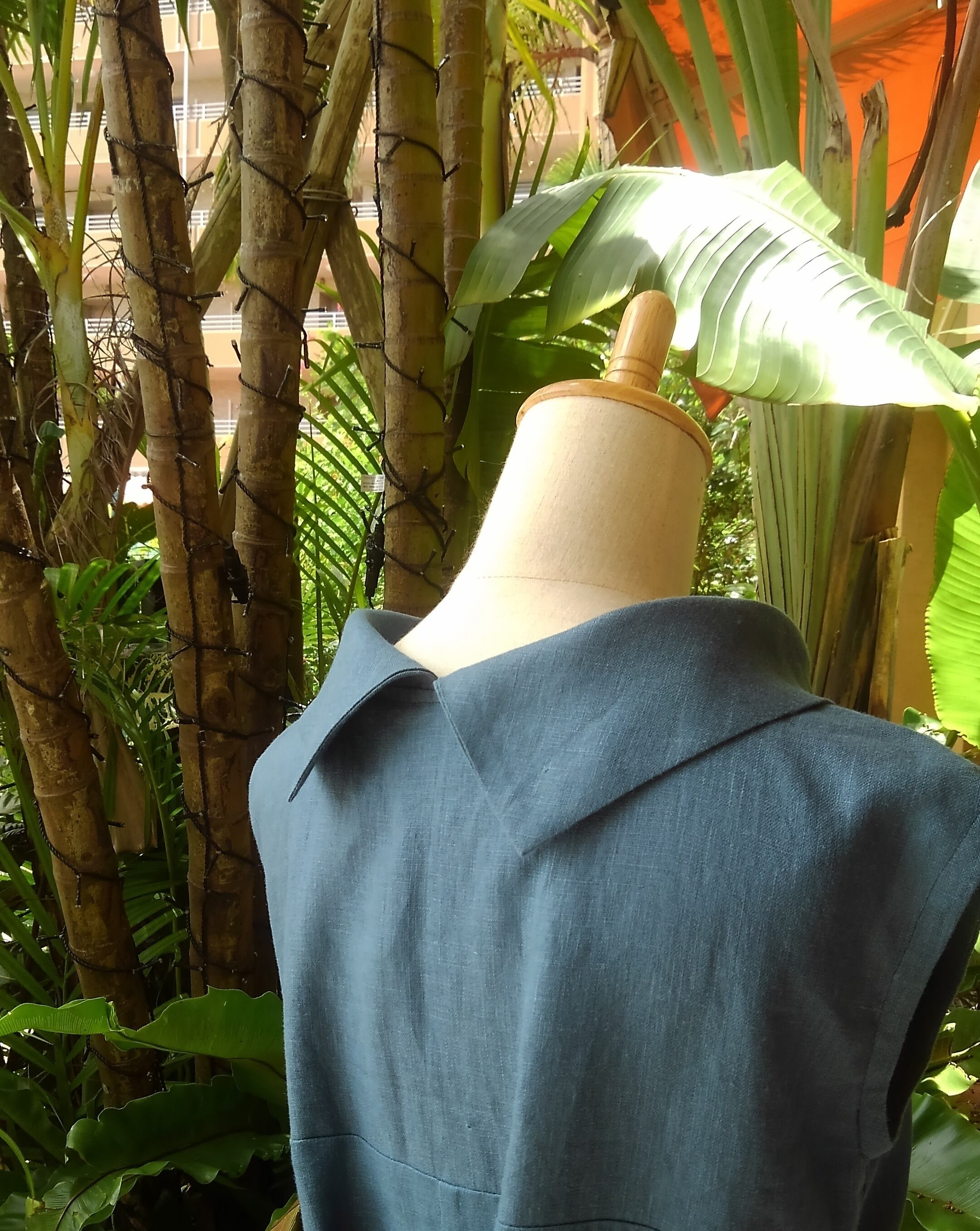 (M)クラシカル ニュアンスカラー リネン ワンピース ロールカラー スモークブルー