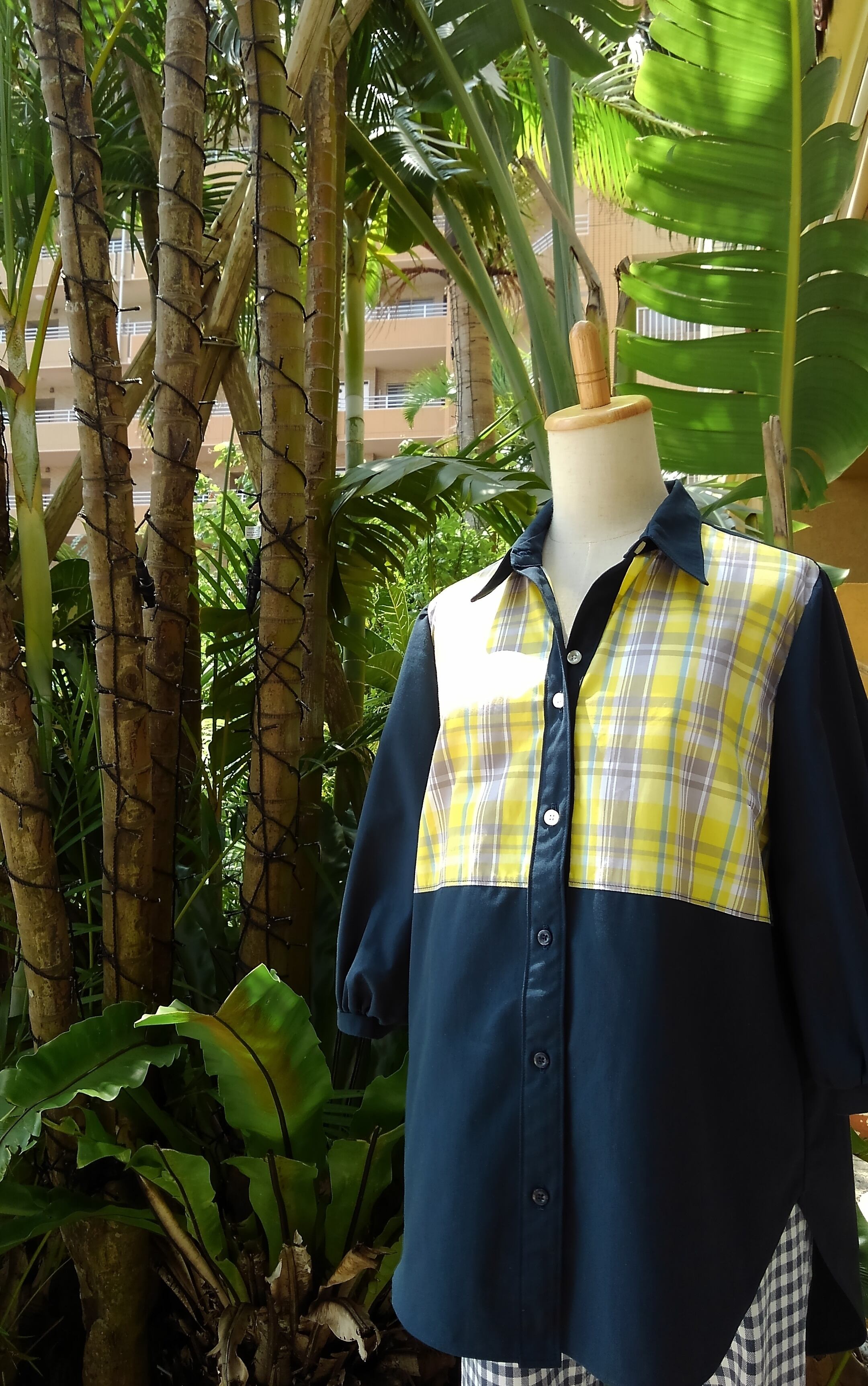 アクセントには、明るく顔色をよく見せるイエローのタータンチェックを合わせました。