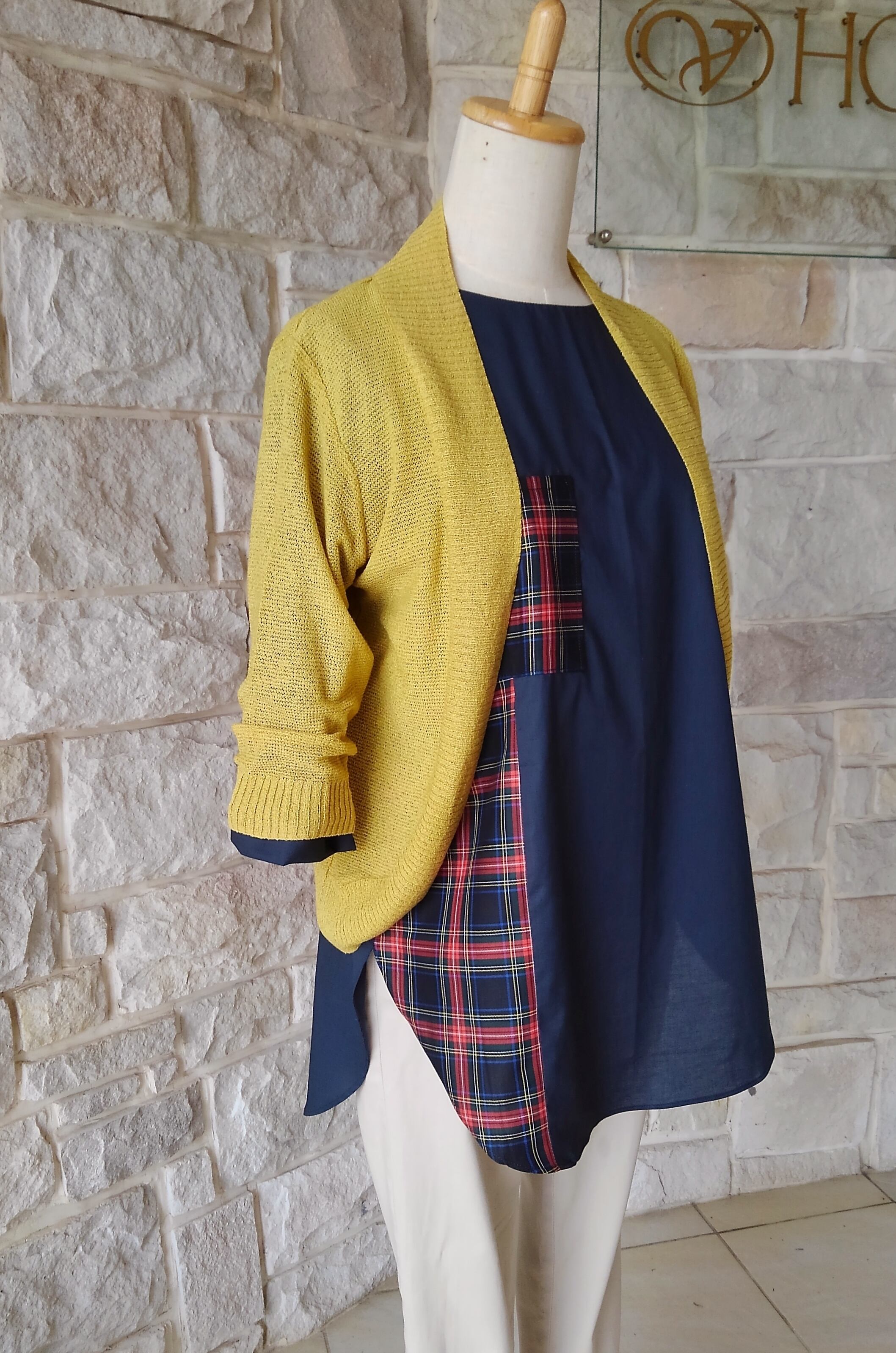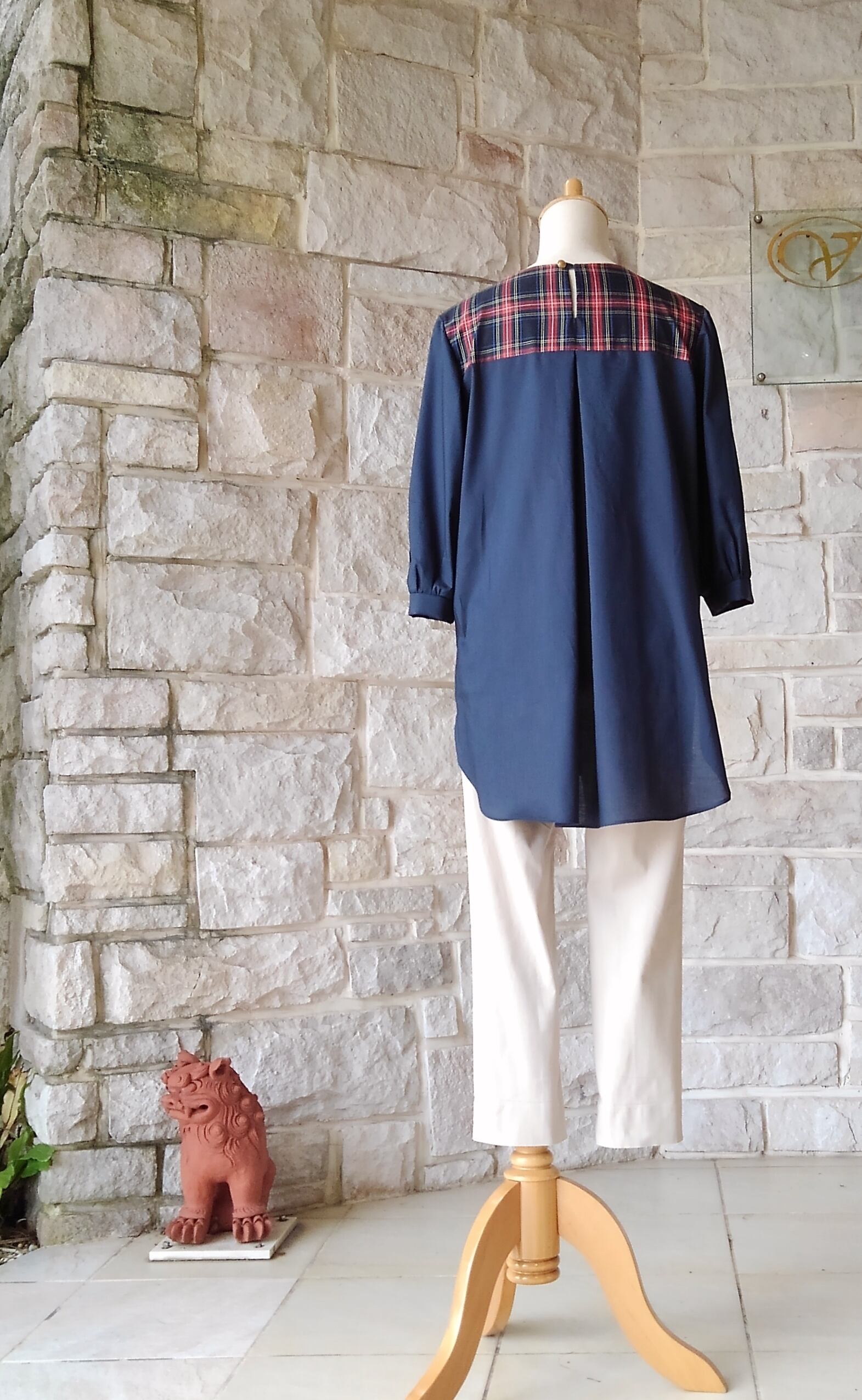【HN様オーダー画面】英国・体形カバー・タータンチェック・ネイビー・えり無しブラウス
