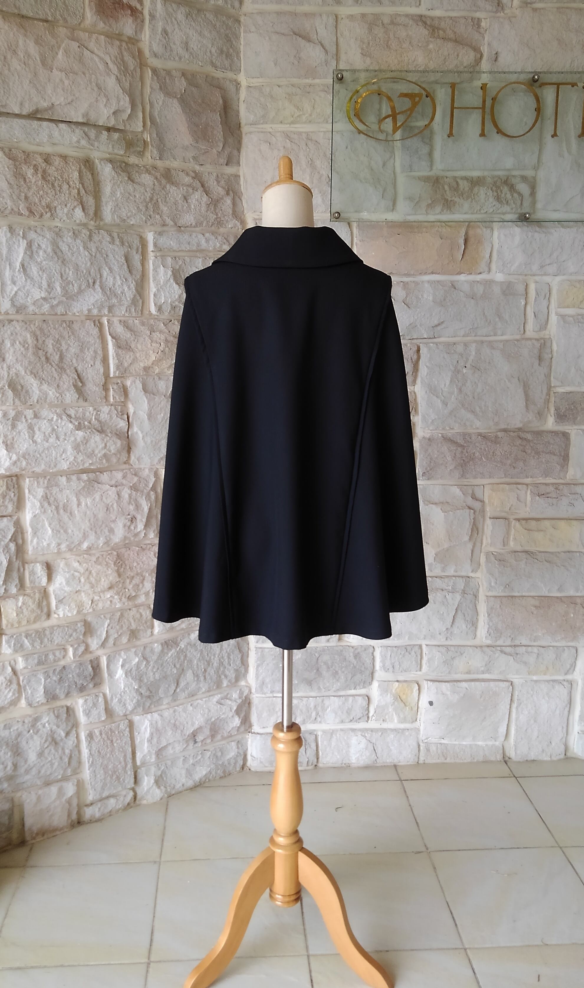 全て黒で仕上げたケープコート。