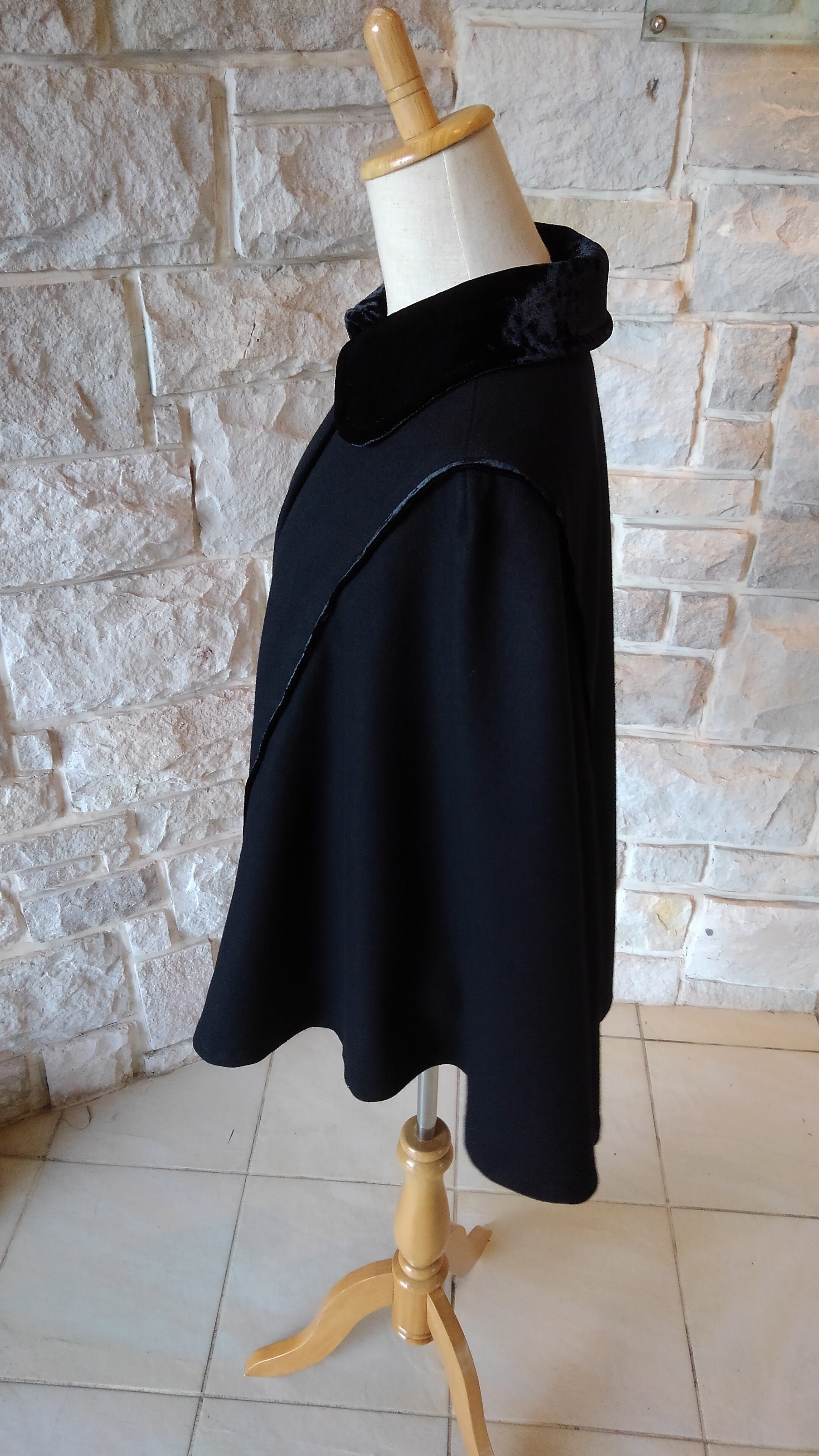 【エレガントケープコート】上質メルトン ウール100% 黒 厚手(1.1mm) クラッシュベロア