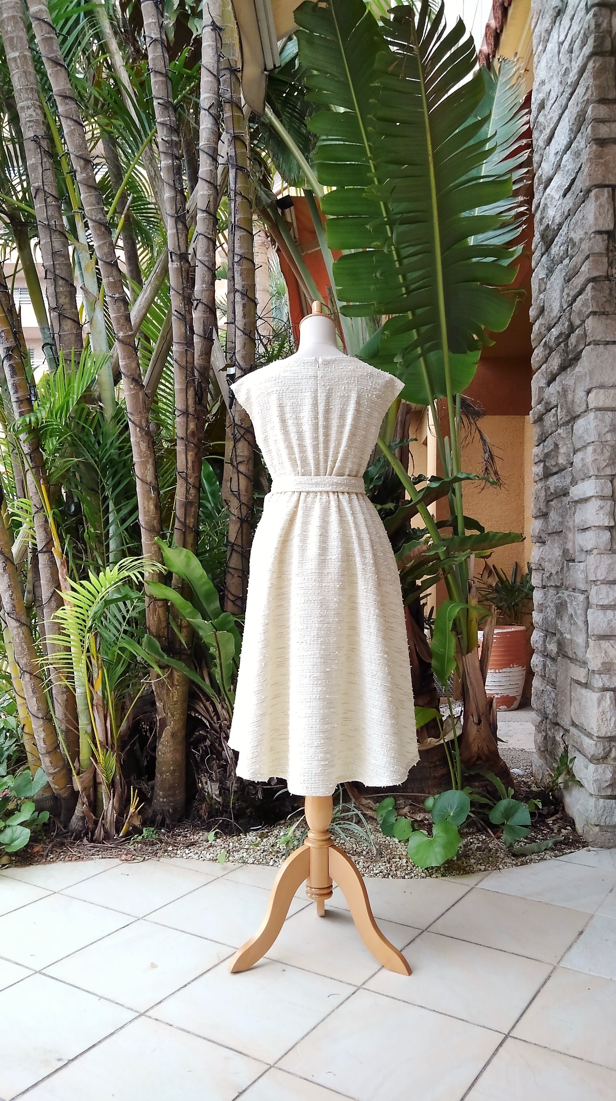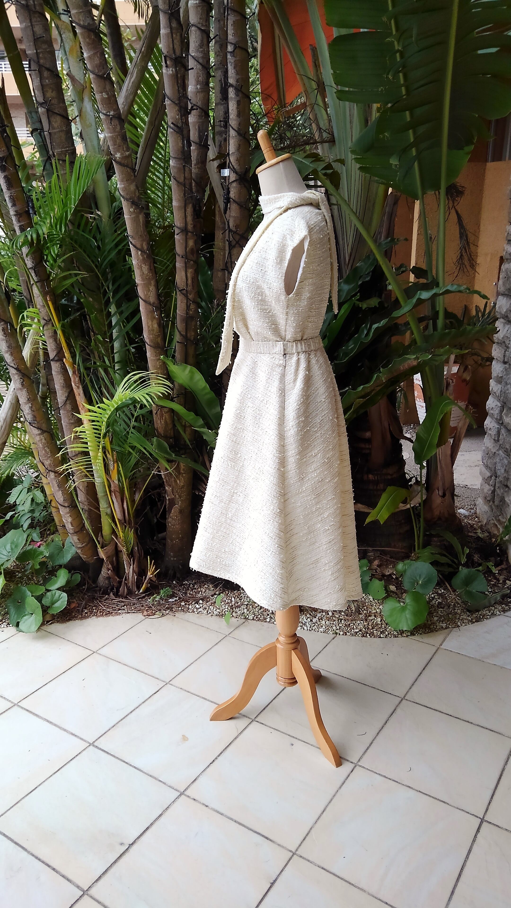 クリームベージュ ライムイエローライン セパレート ツイード ワンピース フィッシュテール