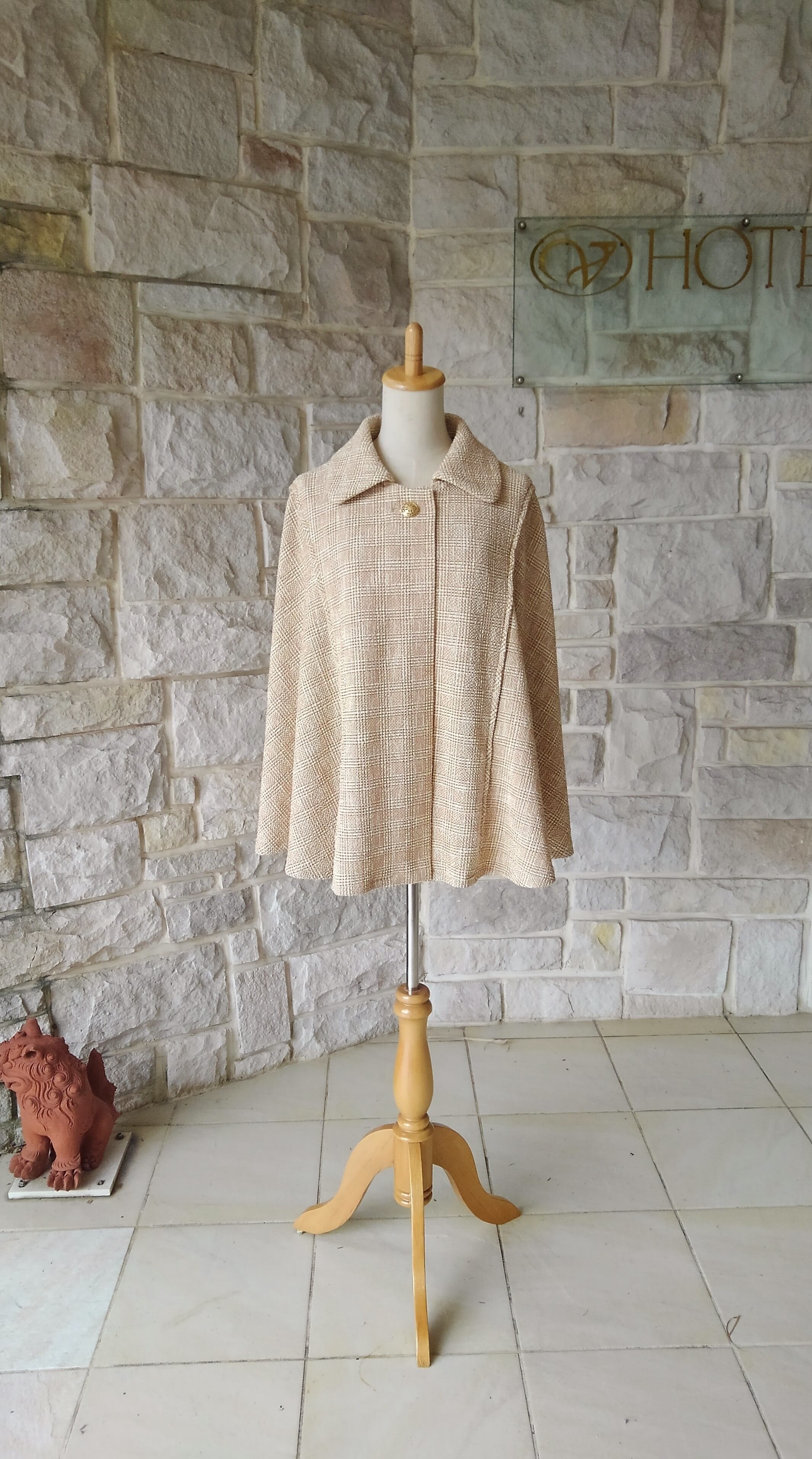 ミルクティーベージュカラーのケープコートをお作りしました。