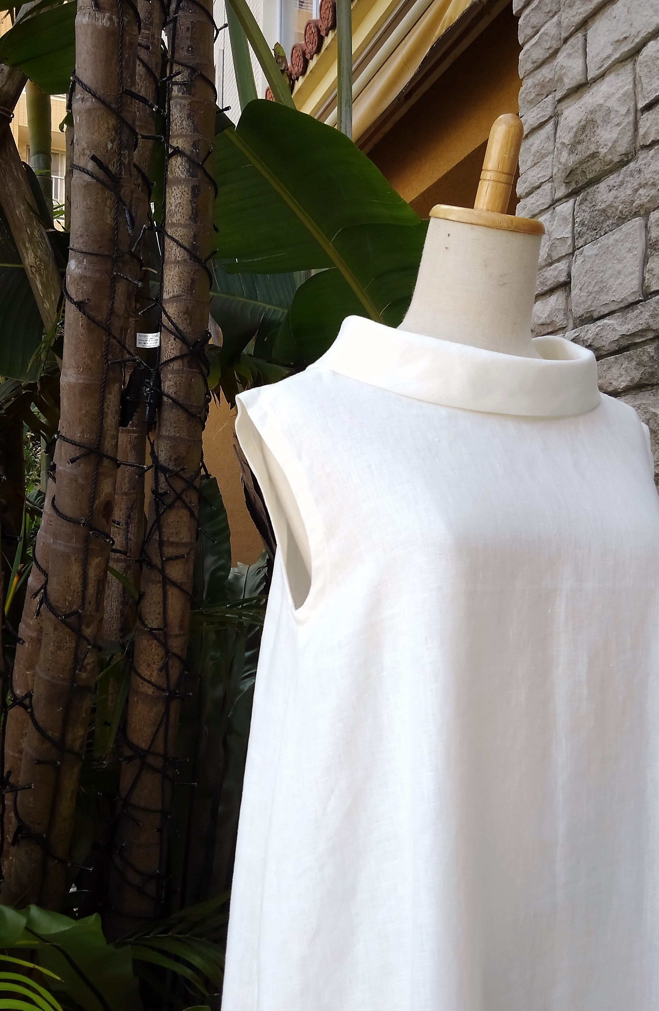 気持ちがよい、すっきりした白のリネンワンピースです。