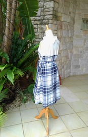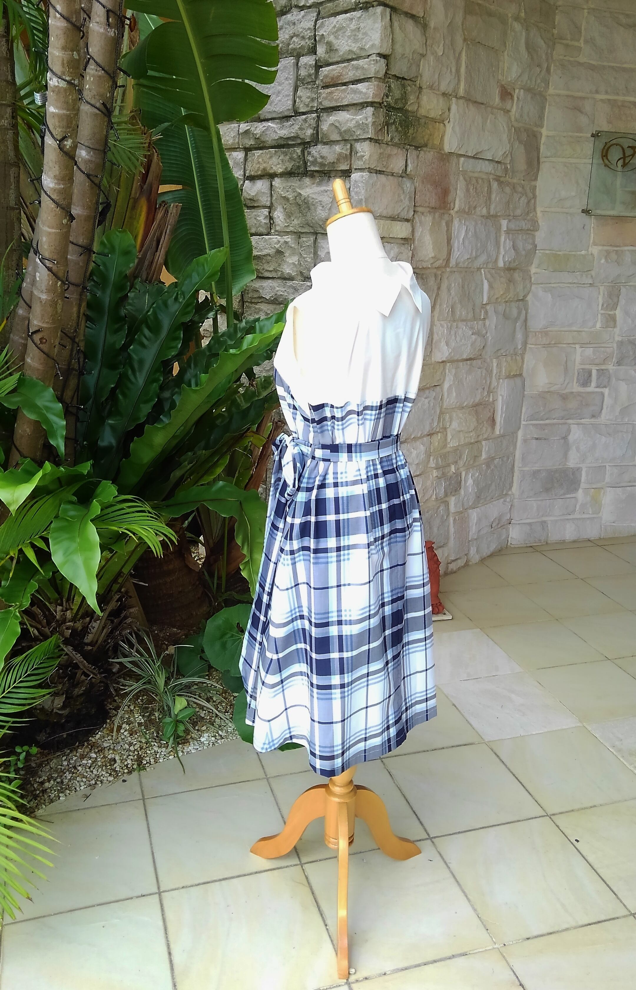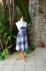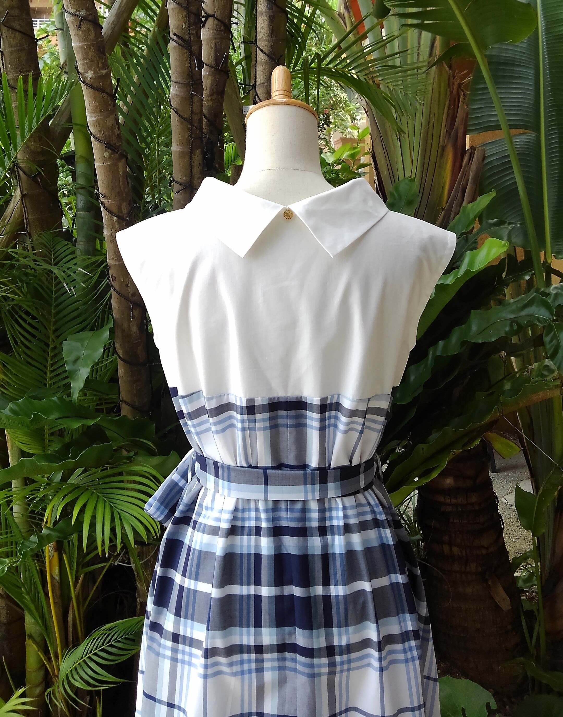 (M)クラシカルワンピース ネイビー 英国調大柄タータンチェック×白コットン