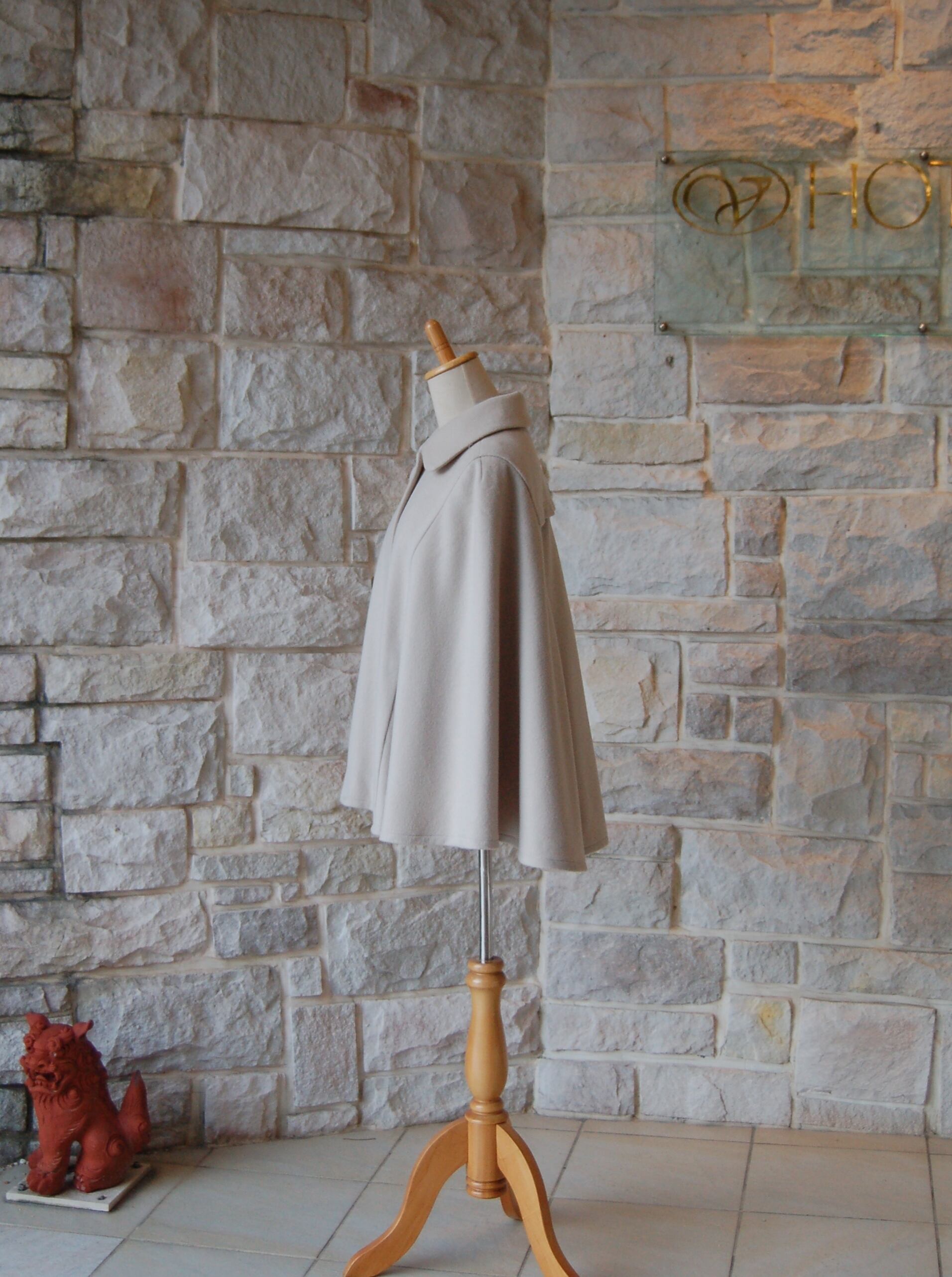 【 エレガント ケープ コート 】ダスティエクリュ ステンカラー 背ヨーク付き♪