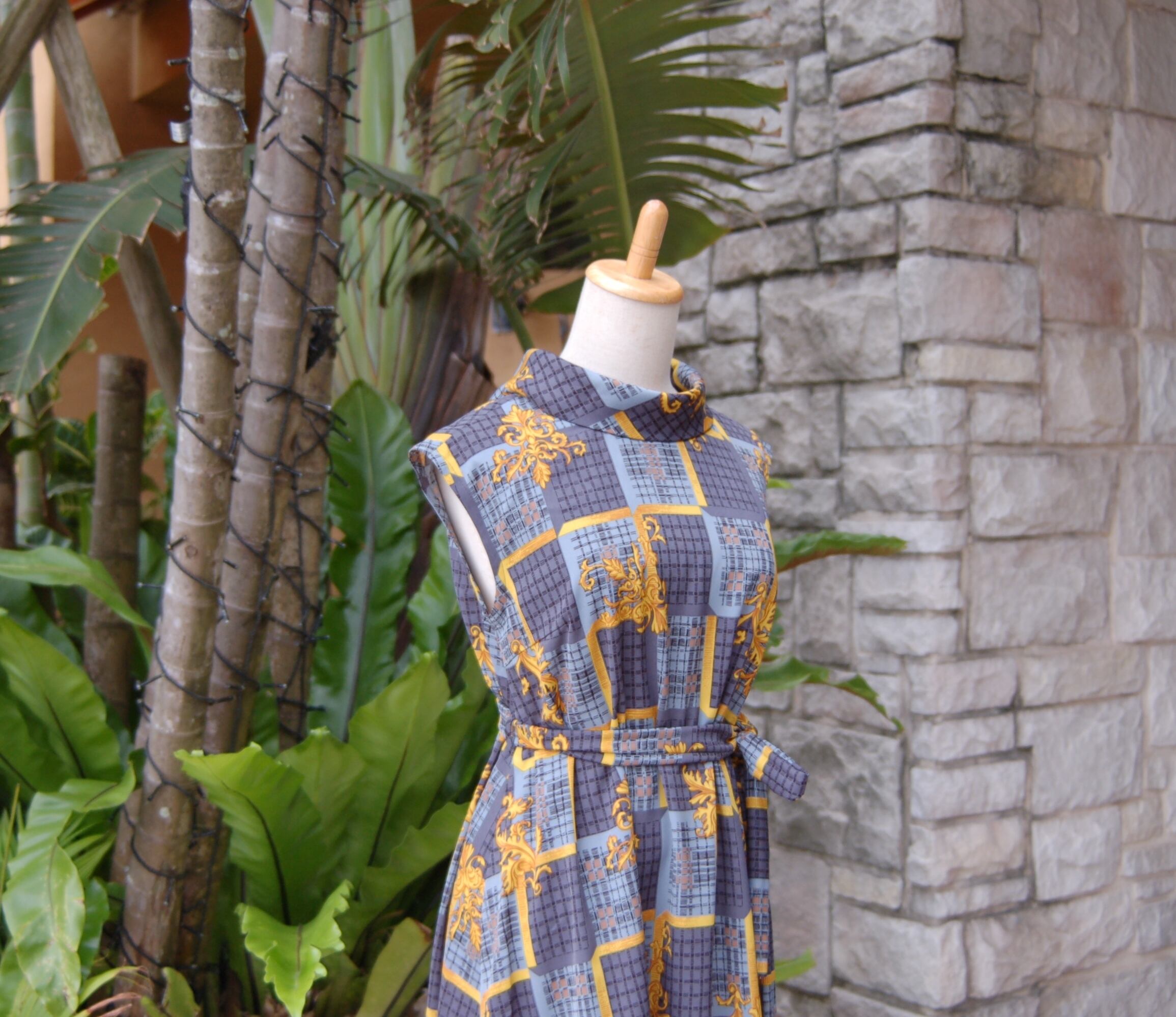 【平置寸法】バスト:約48センチcm ウエスト:約50cm 総丈:前約110・後ろ約115cm 袖周り:約40cm