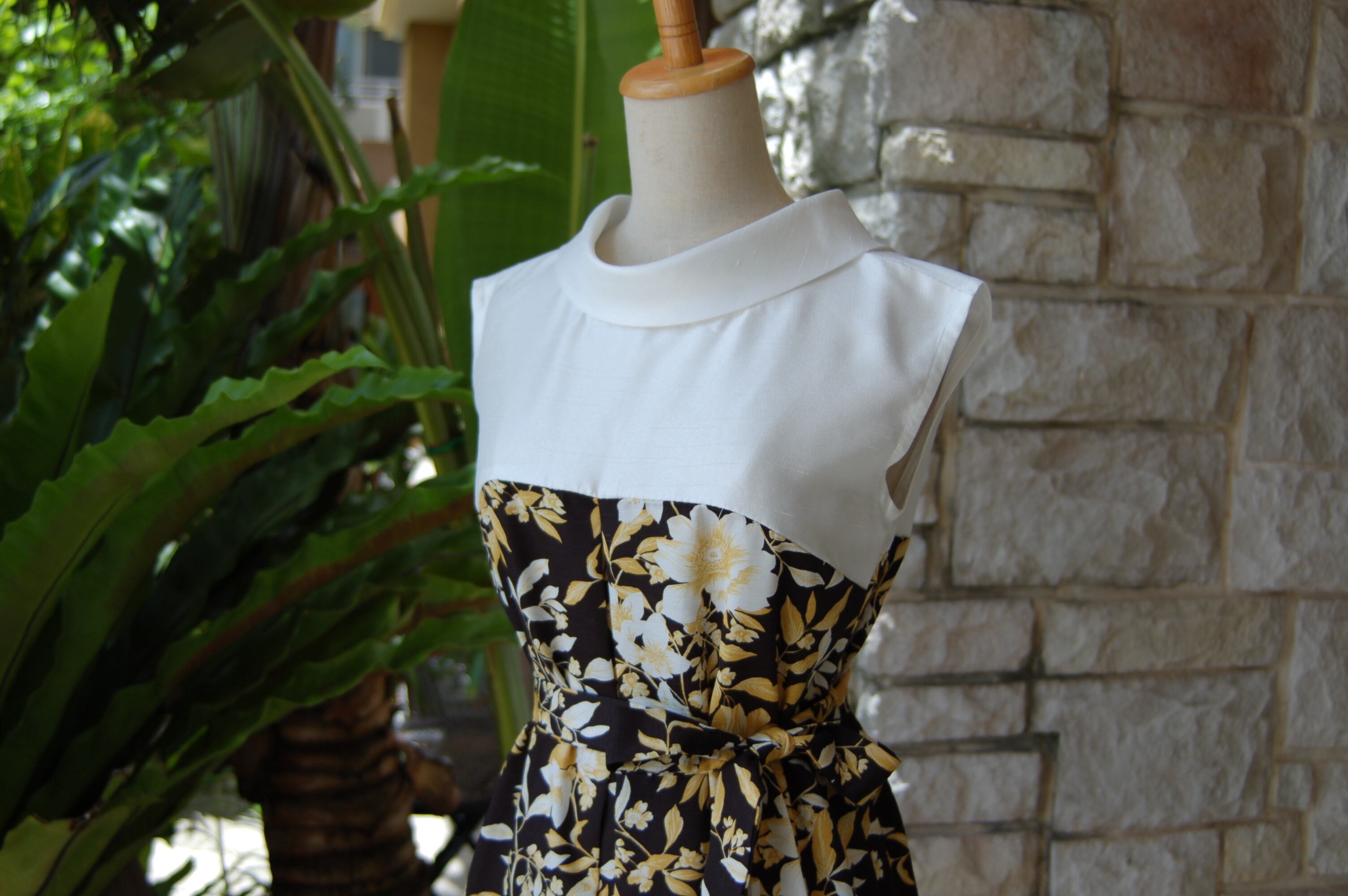 (M)バイカラー シノワズリ センタータック クラシカルワンピース ロールカラー