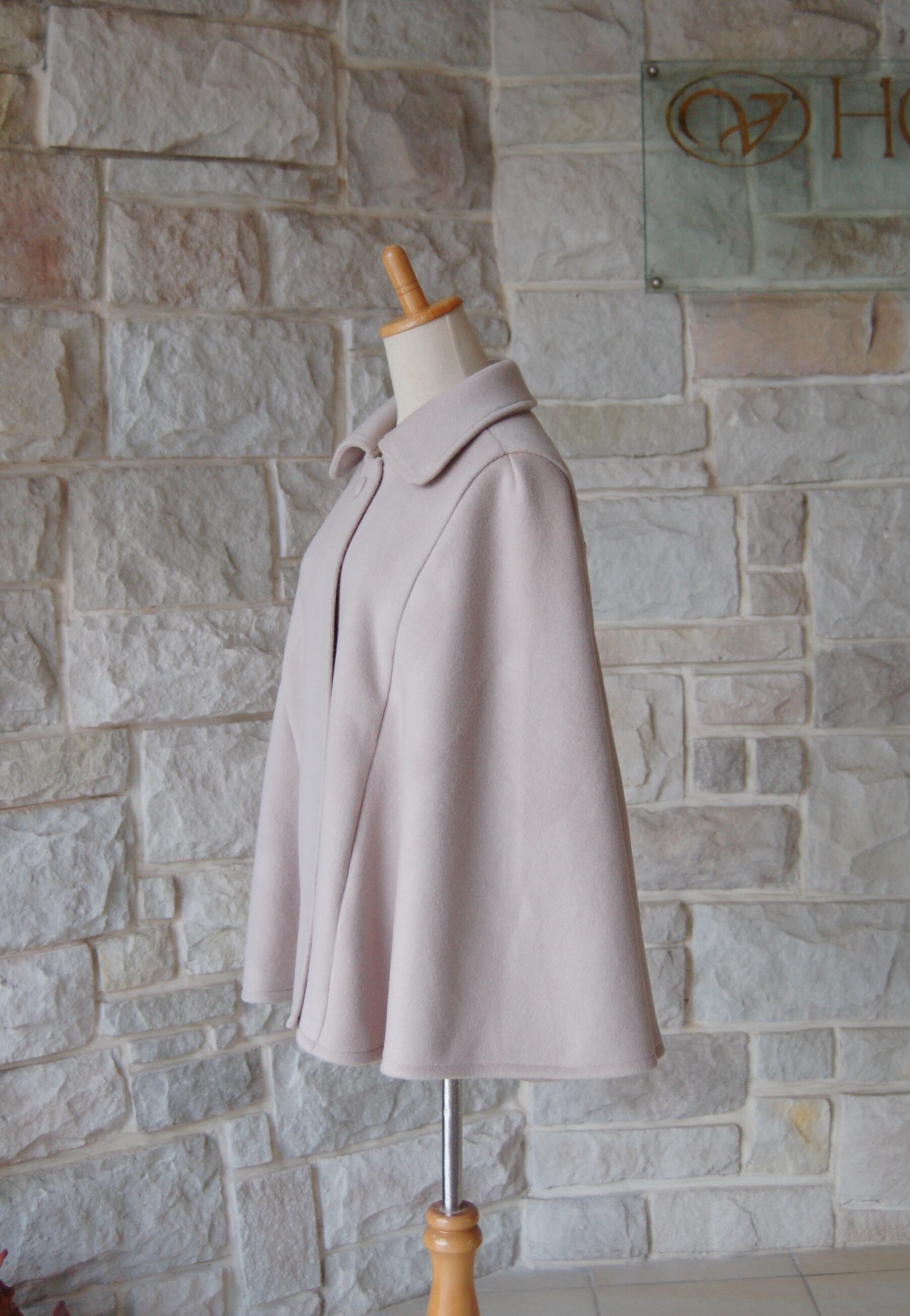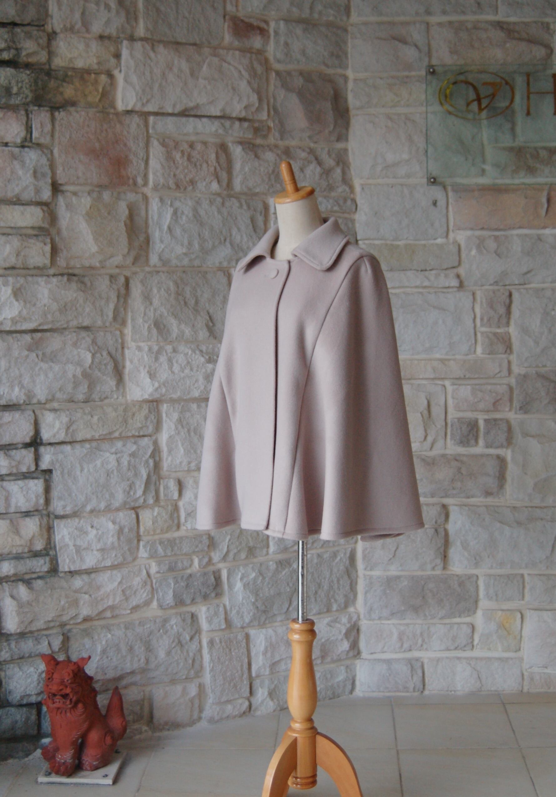 【 エレガント ケープ コート 】上品な微光沢のある上質カシミヤウール シックなグレージュ(ベージュにグレーの色味)