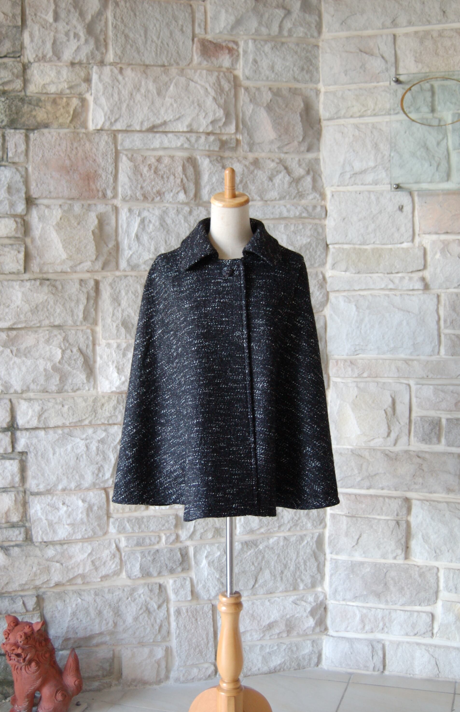 【エレガント ケープコート】聖なる夜に静かに舞う雪 ダークグレーに白のアクセント