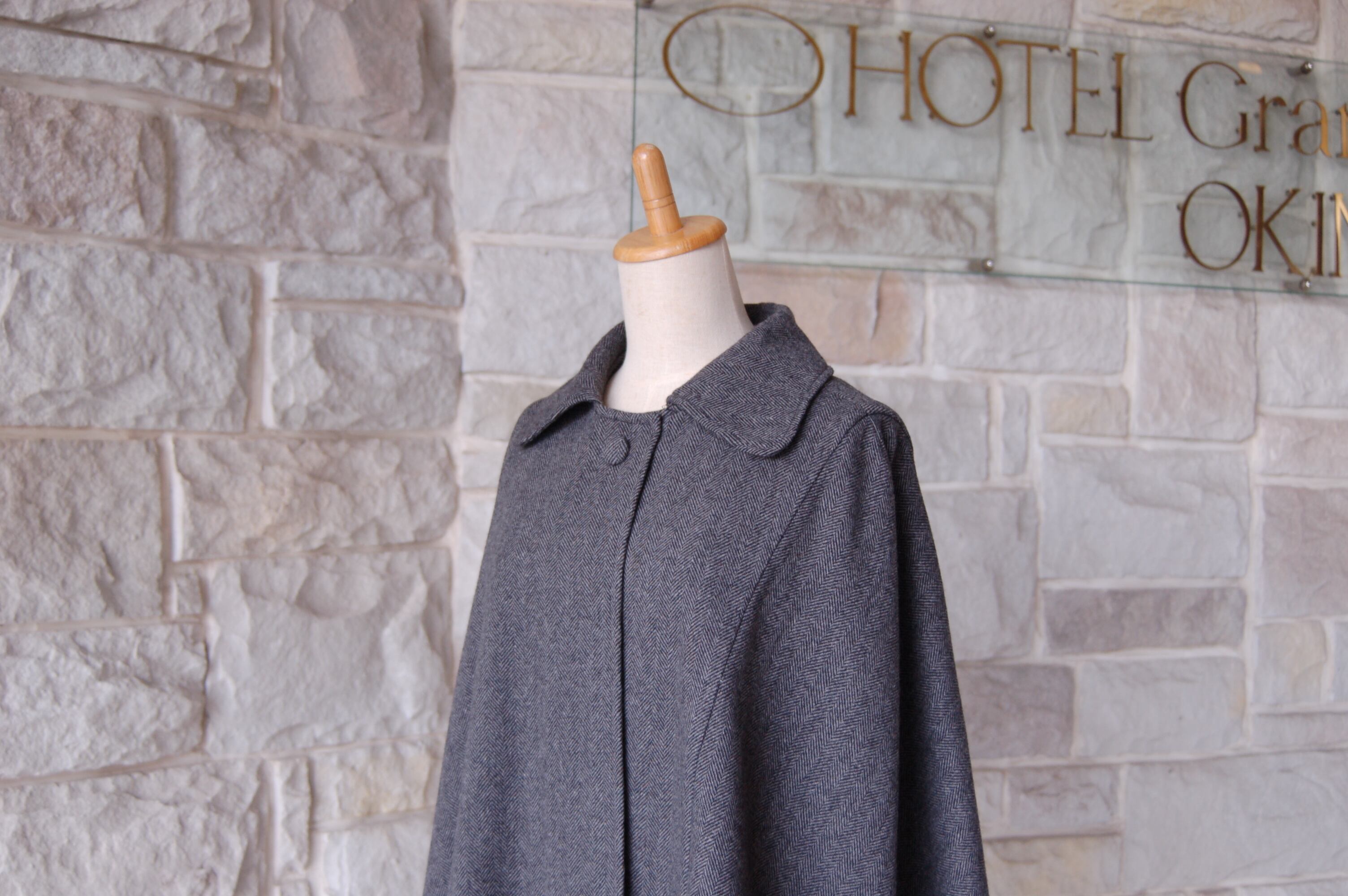 【 エレガント ケープ コート 】 シックなグレー系 クラシカルなヘリンボーン柄 背ヨーク付き