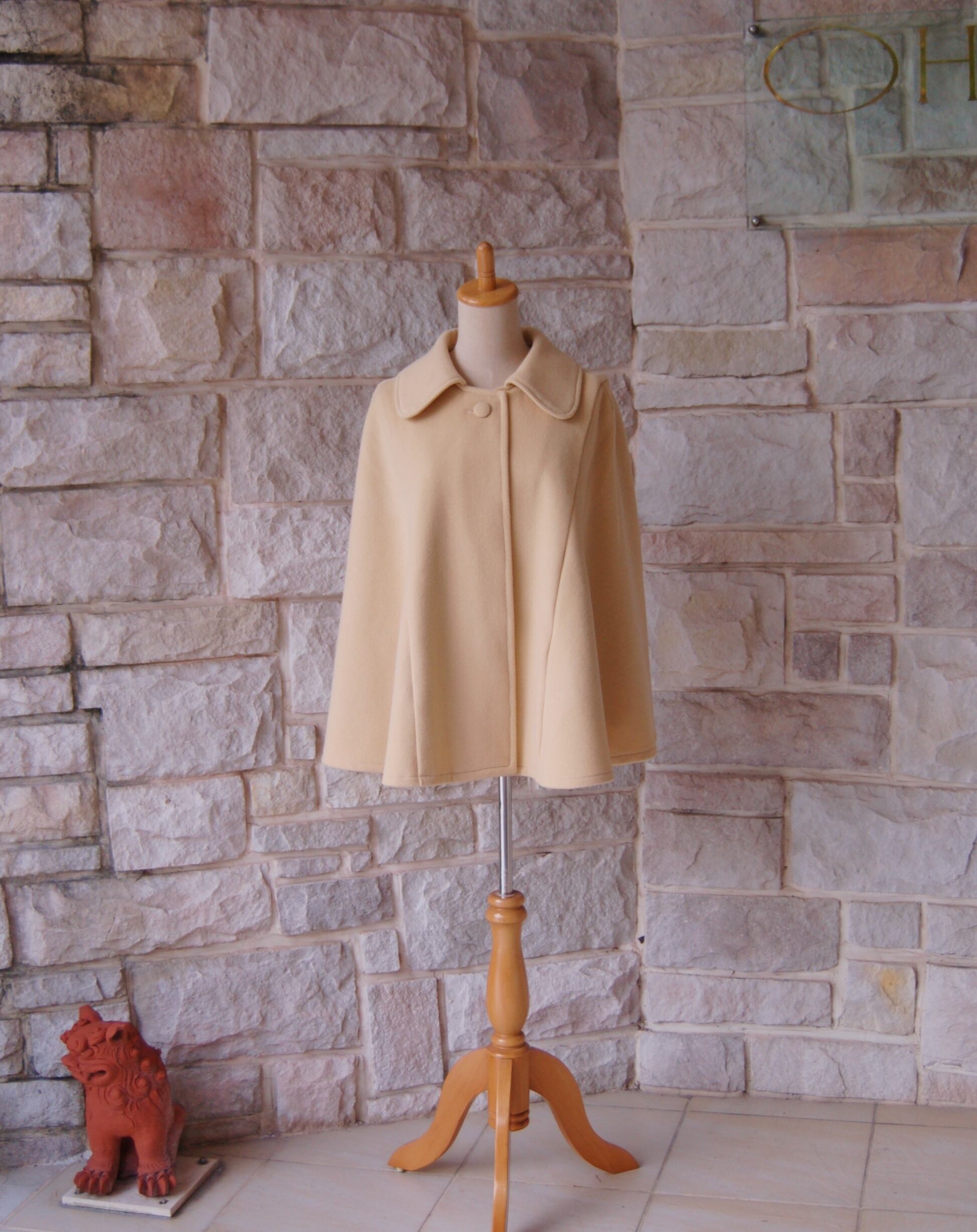 おいしそうな、たまごカスタード色のウール生地を使ってケープコートをお作りしました☆