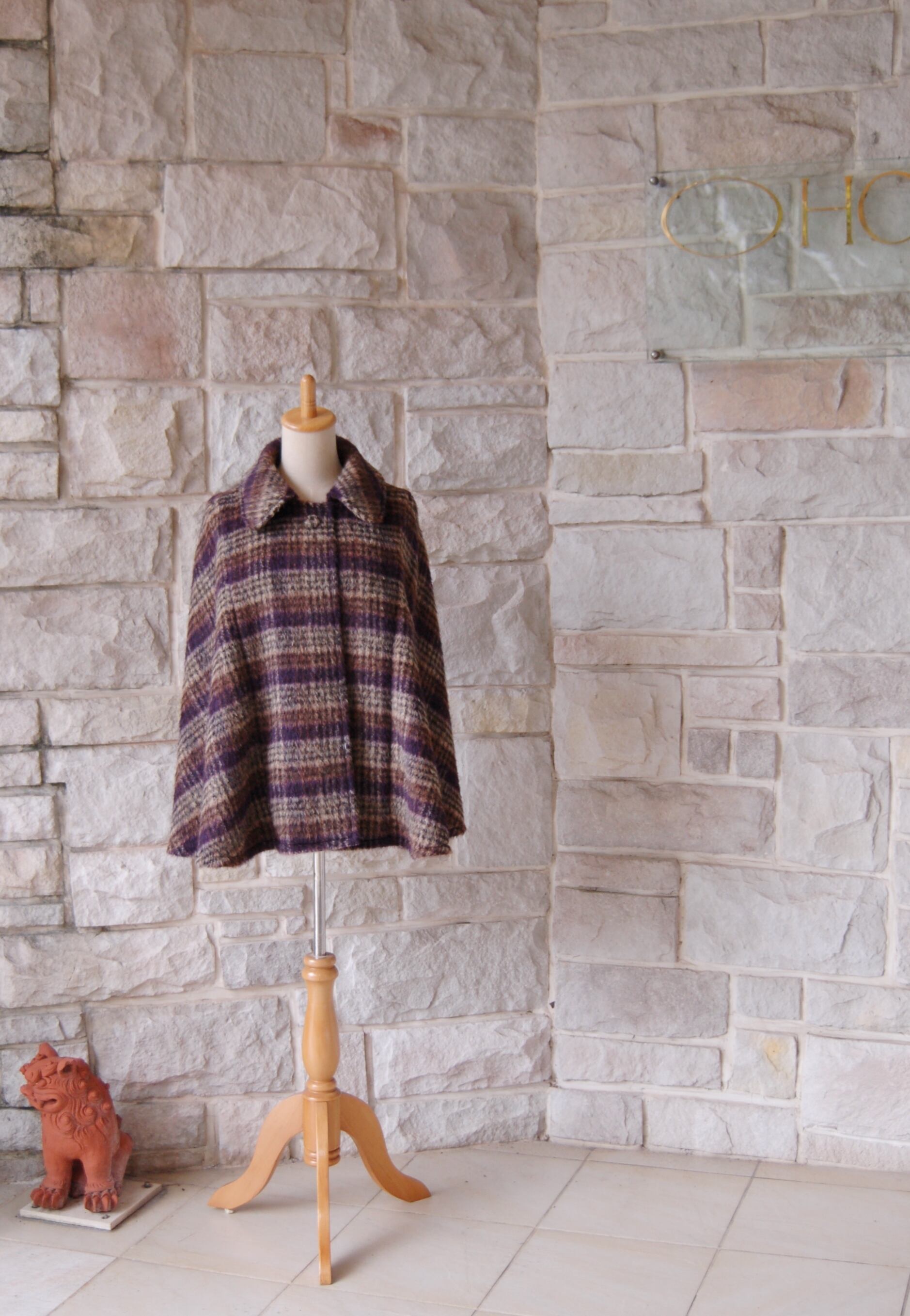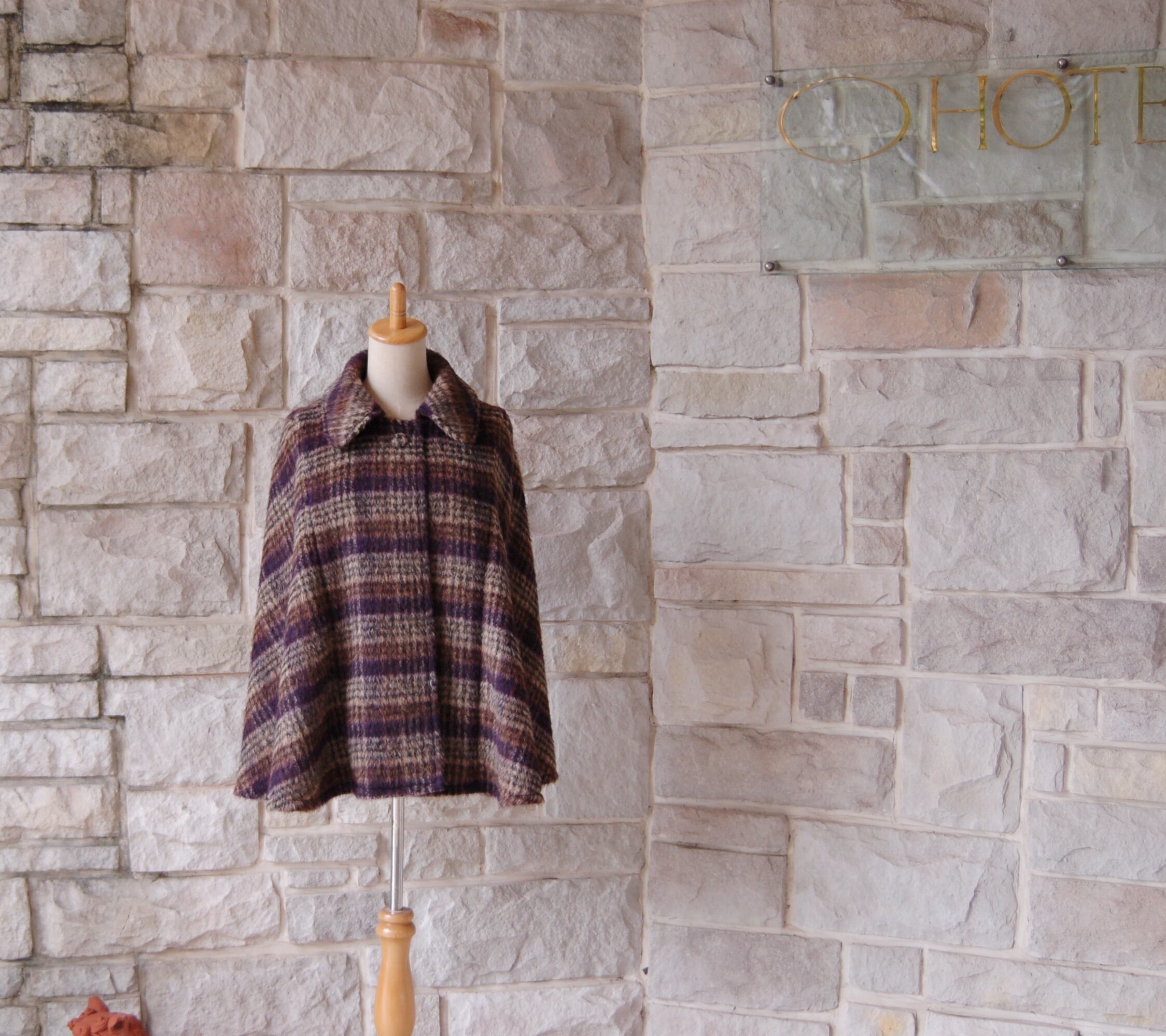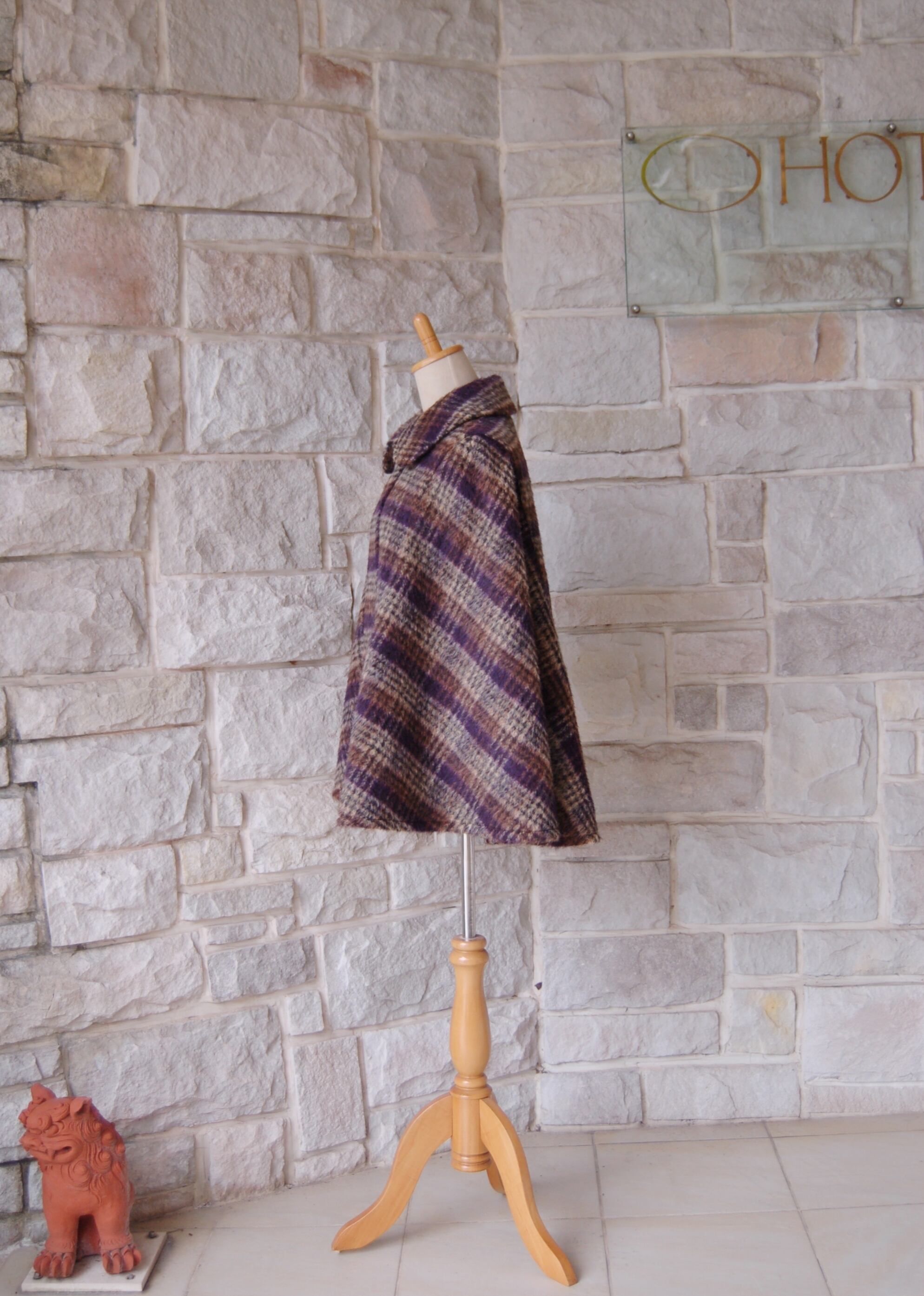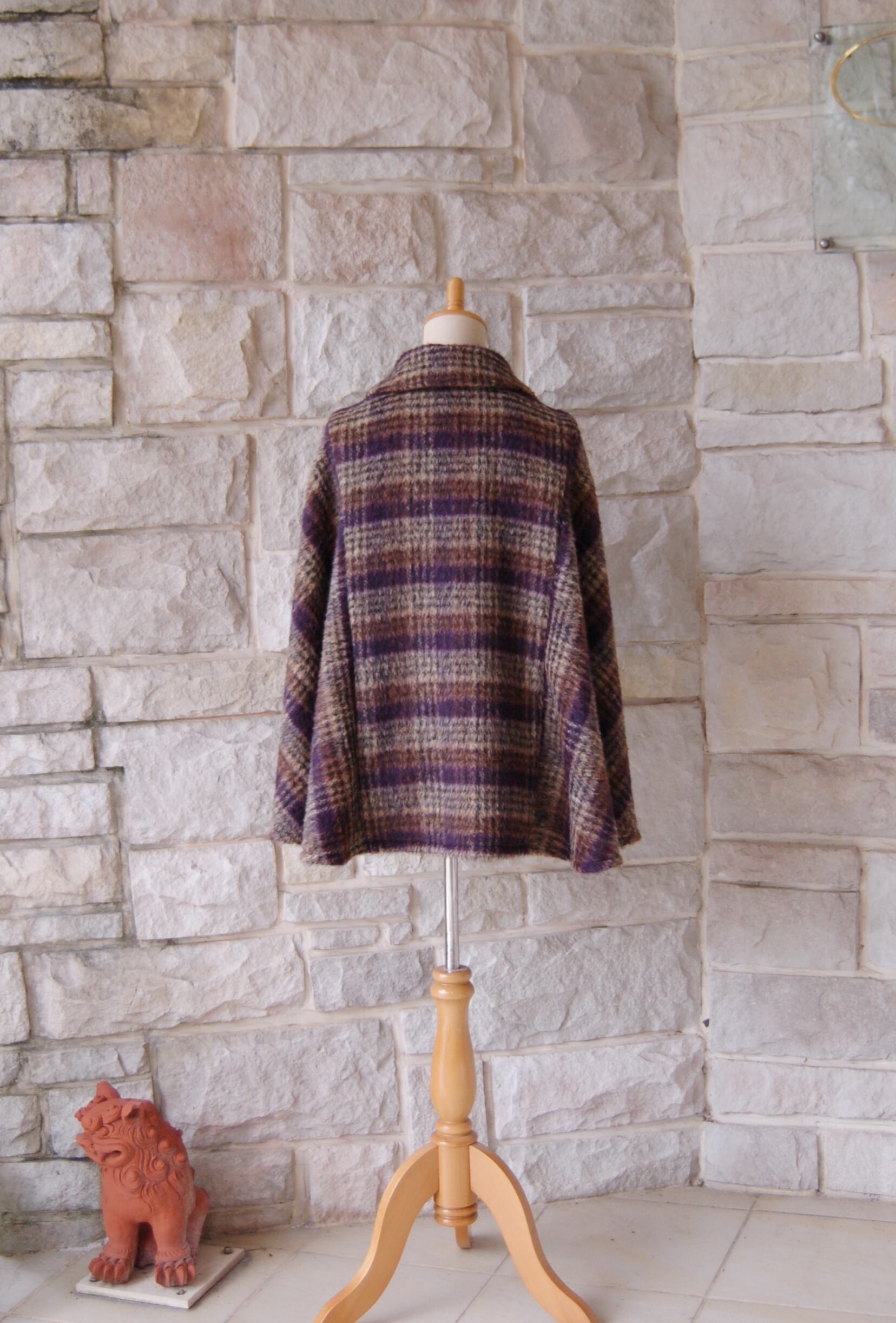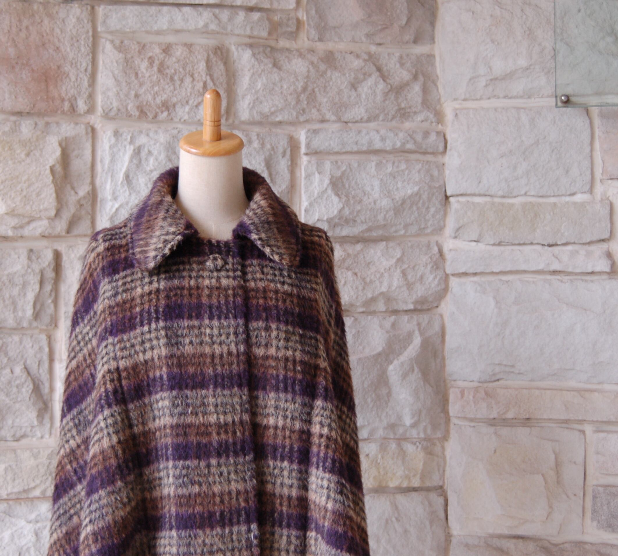 【エレガントケープコート】ブラウン×ベージュ×パープル フランス製の生地