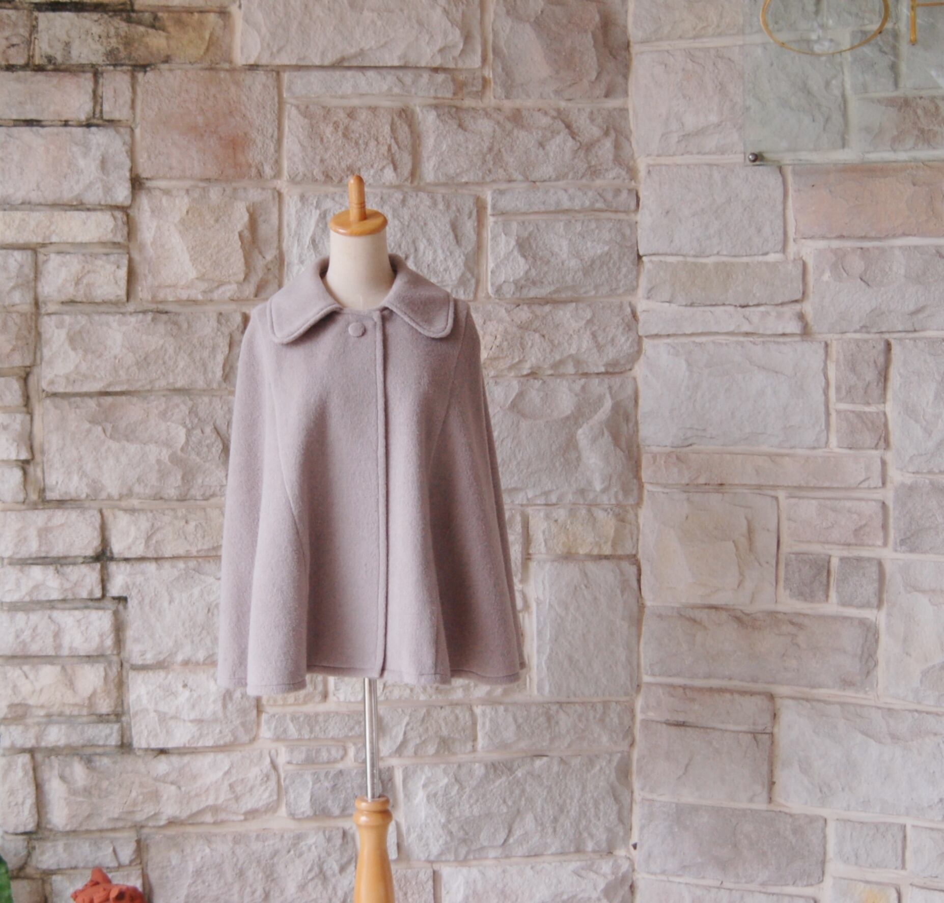 【 エレガント ケープ コート 】ライトグレー ウール・カシミヤ シャギー生地(毛流れのある生地) 軽い♪