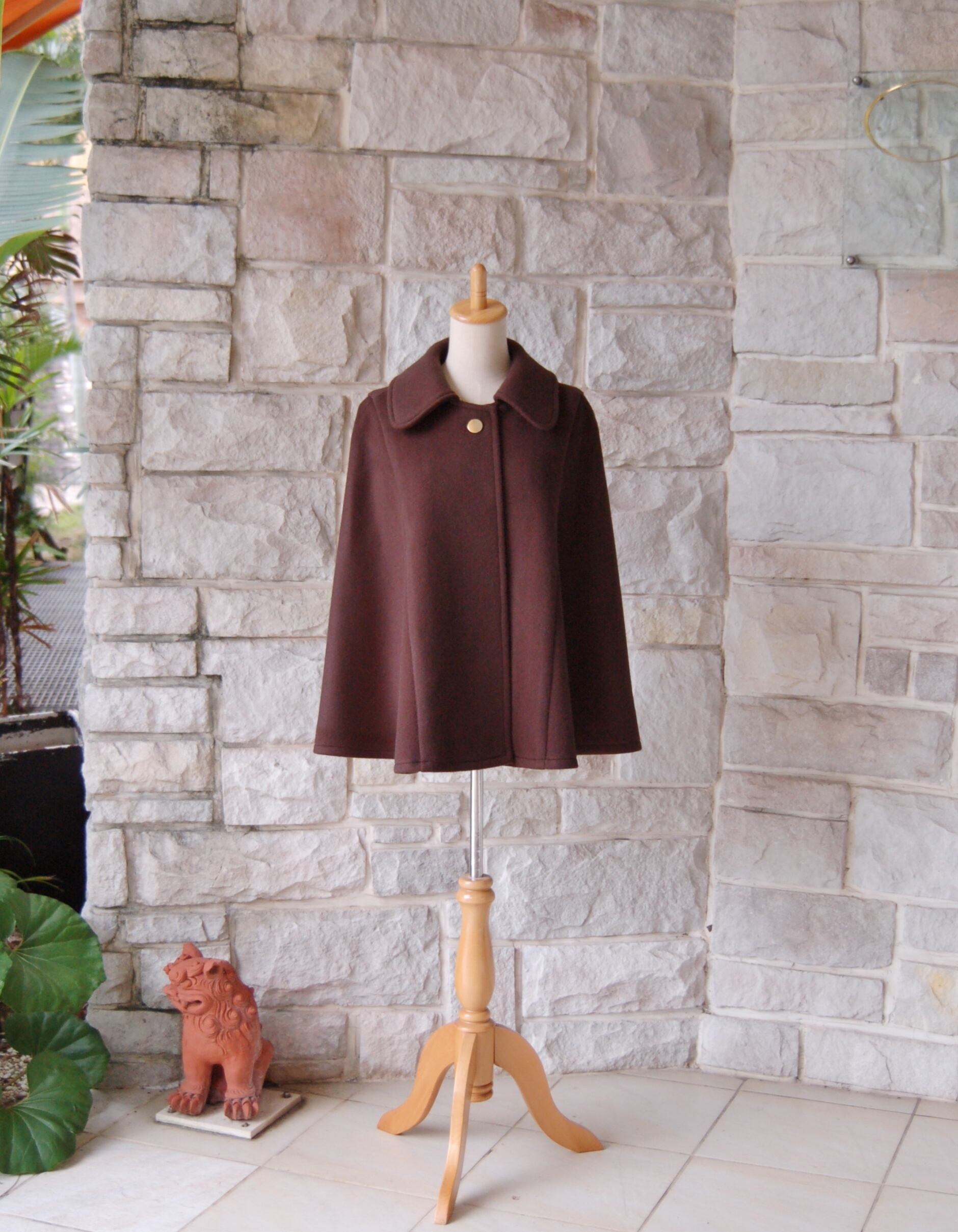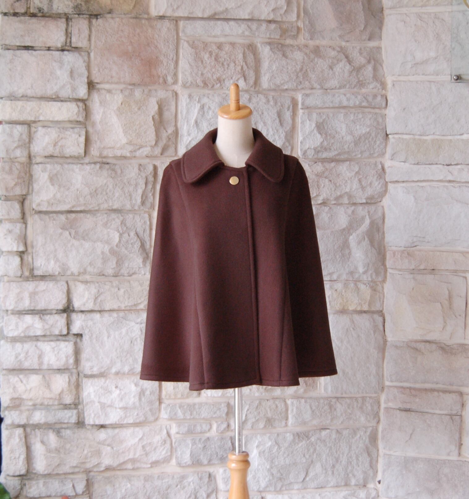 【 エレガント ケープ コート 】ダークチョコレートブラウン ウール・カシミヤ 上質な素材なめらかな手触り