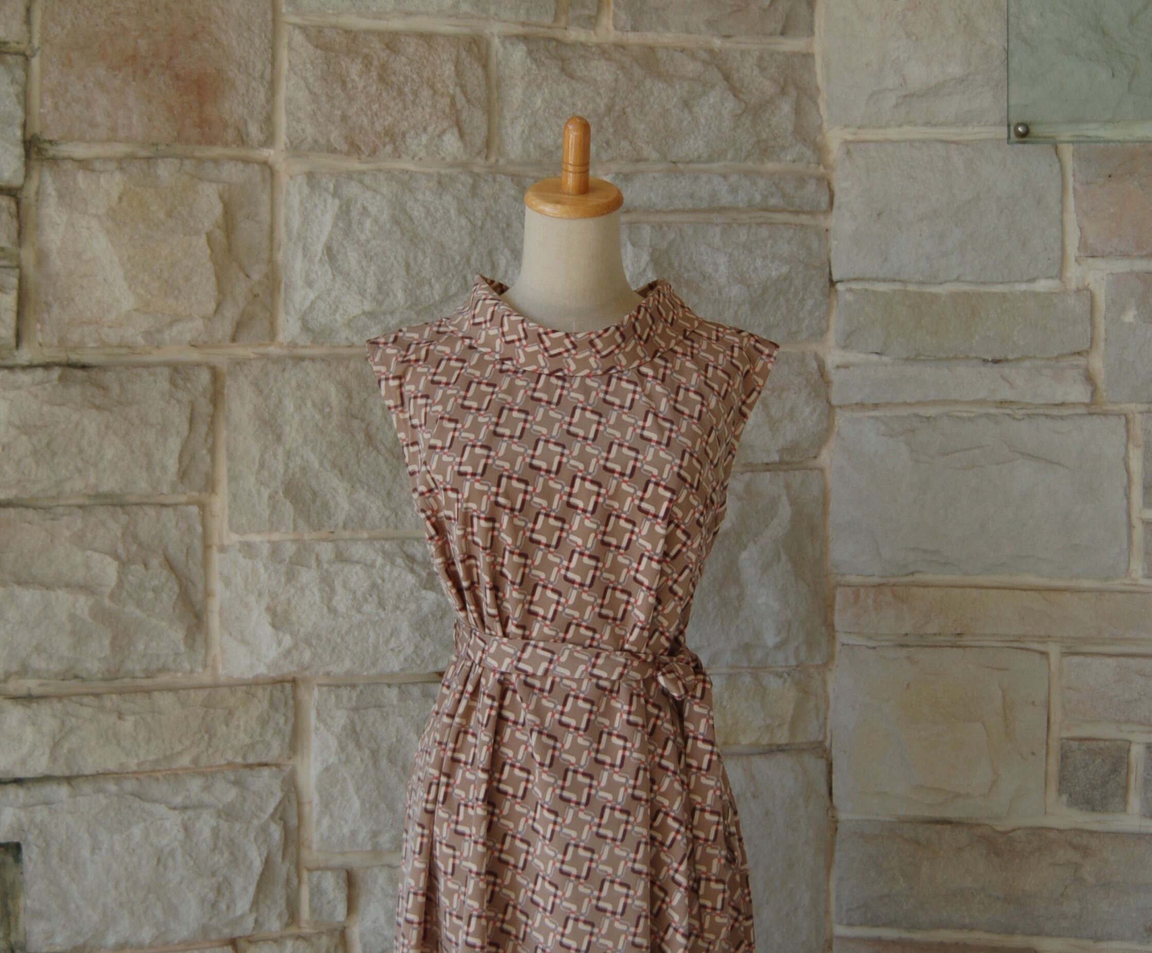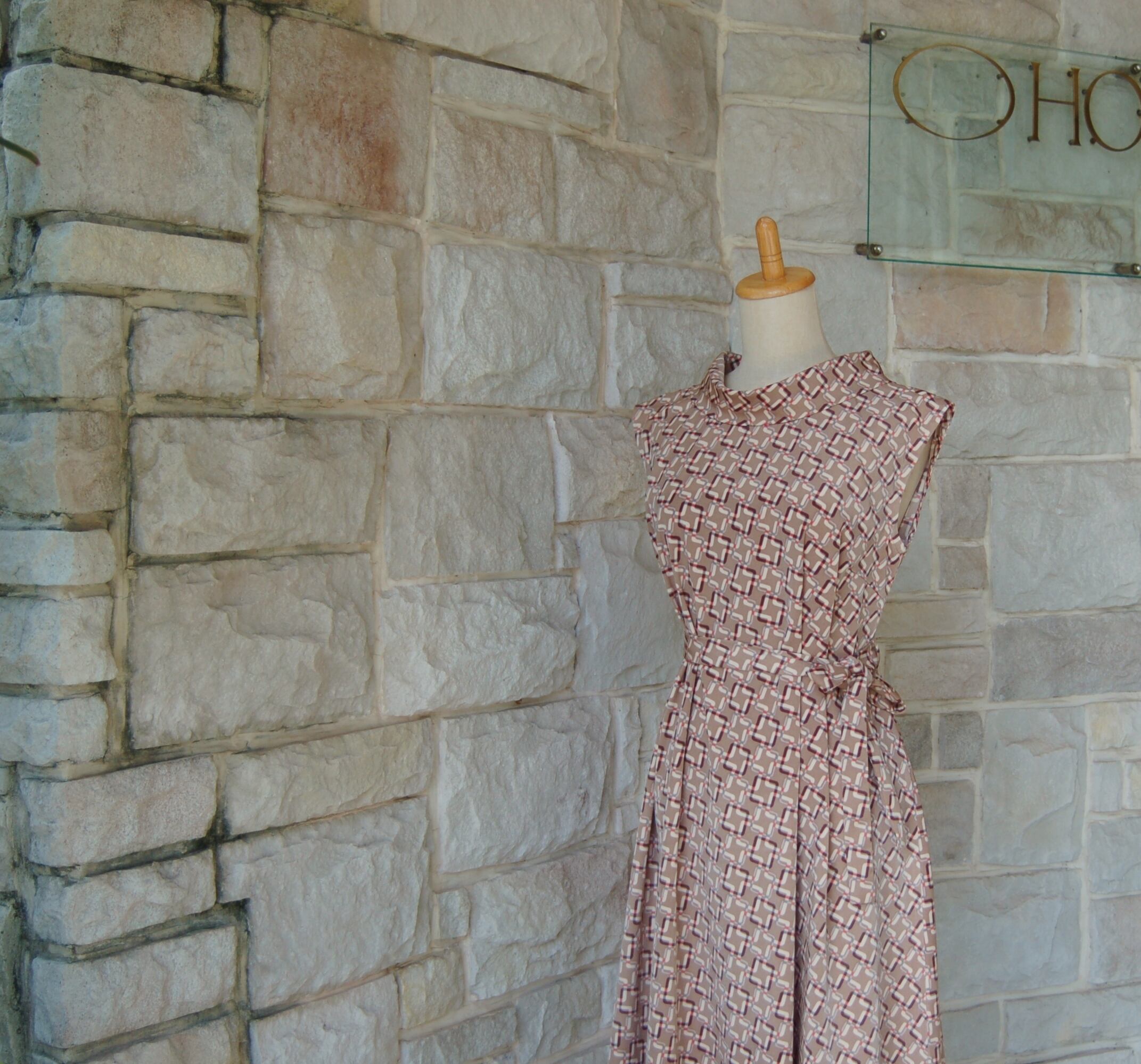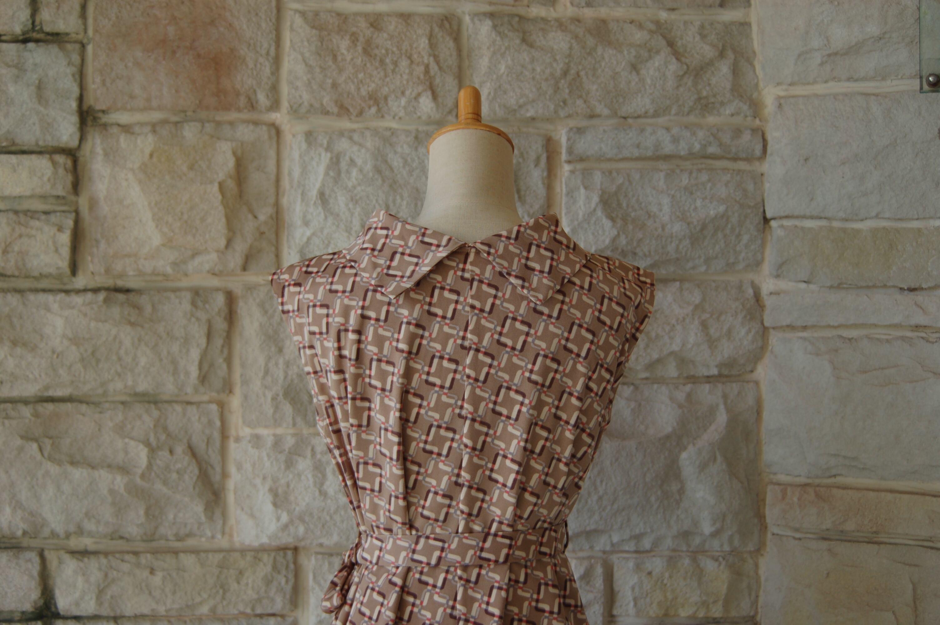 Elegant earthy シックベージュ×ブラウン系 クラシカルワンピース フレンチスリーブ ロールカラー ミドル丈