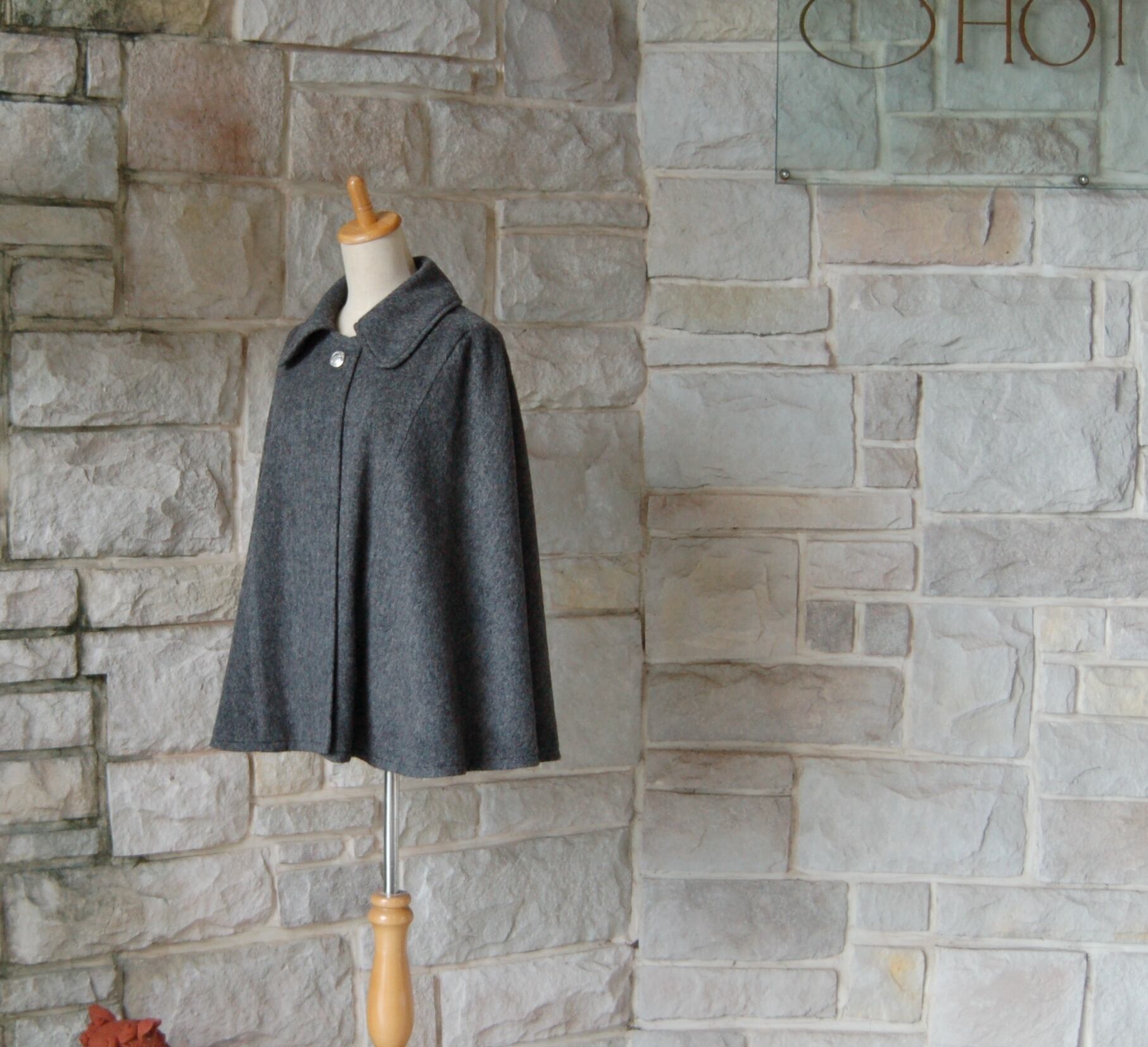 【 エレガント ケープ コート 】落ち着きある使いやすいグレー シルバーの彫りの施されたボタン