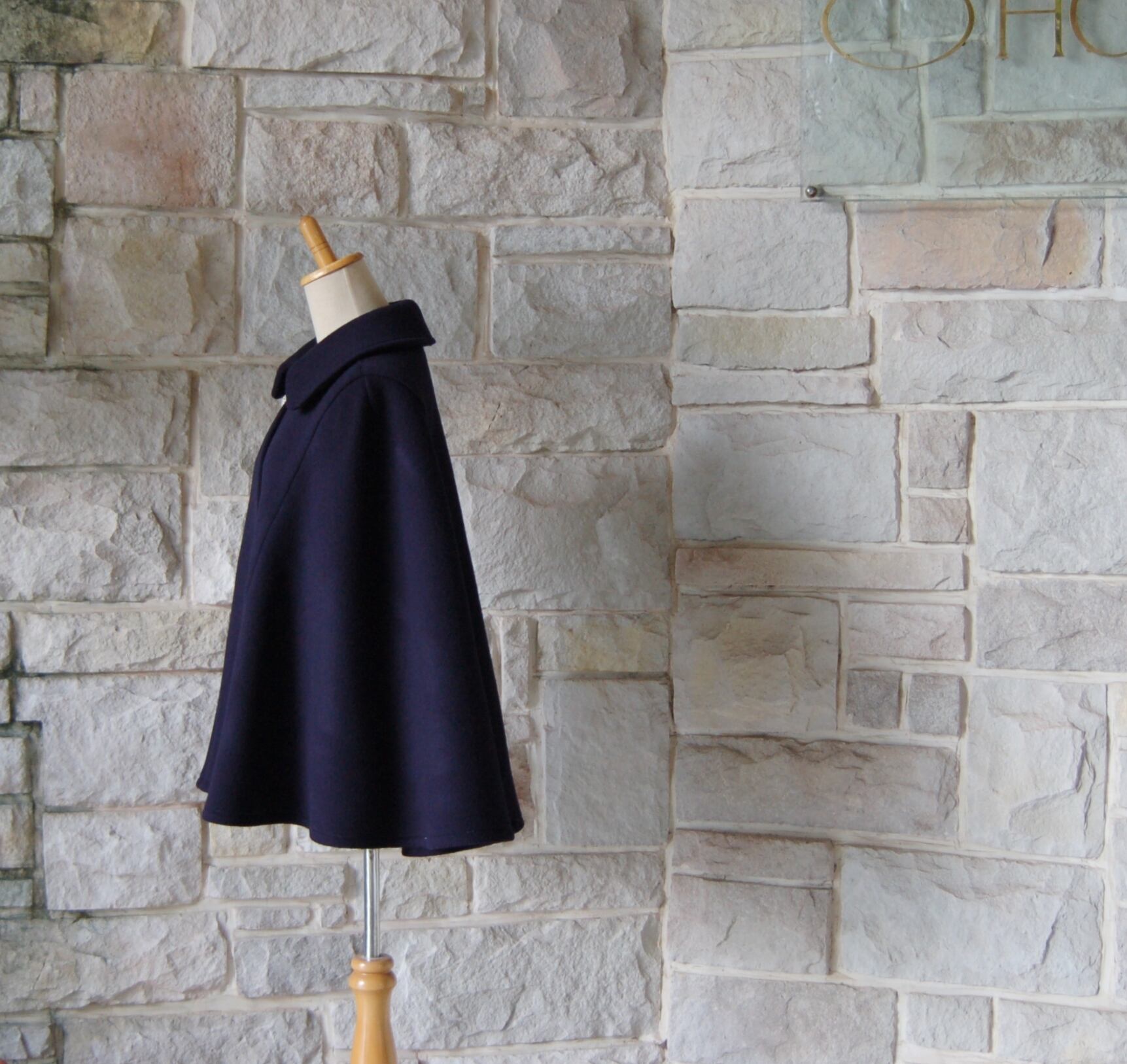 素材のコート向けの生地を使ってシンプルなケープコートをお仕立てしました。