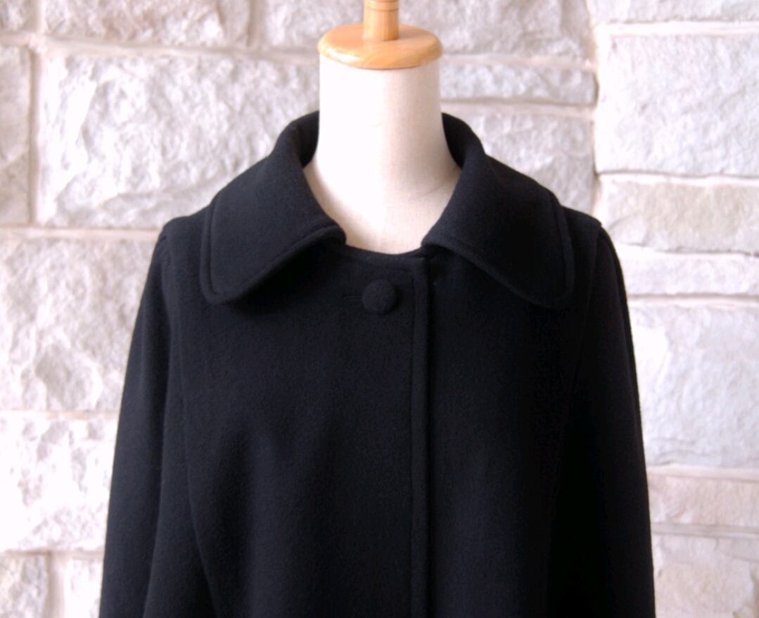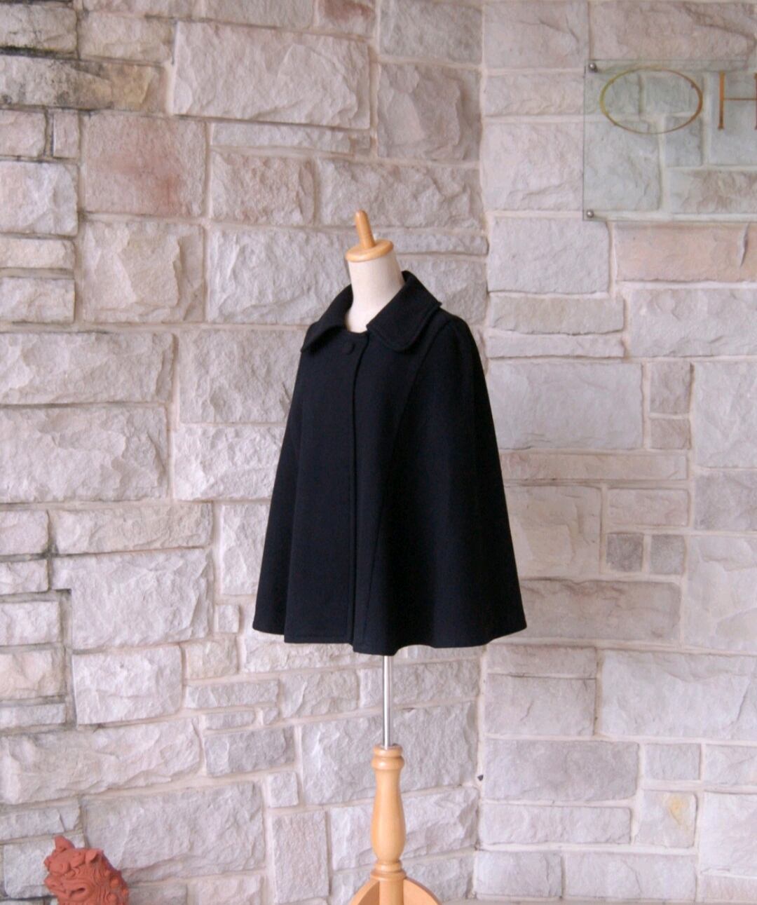 【エレガントケープコート】ザ・ブラック 王道の黒 短い毛流れのあるビーバー生地 ウール・カシミヤ