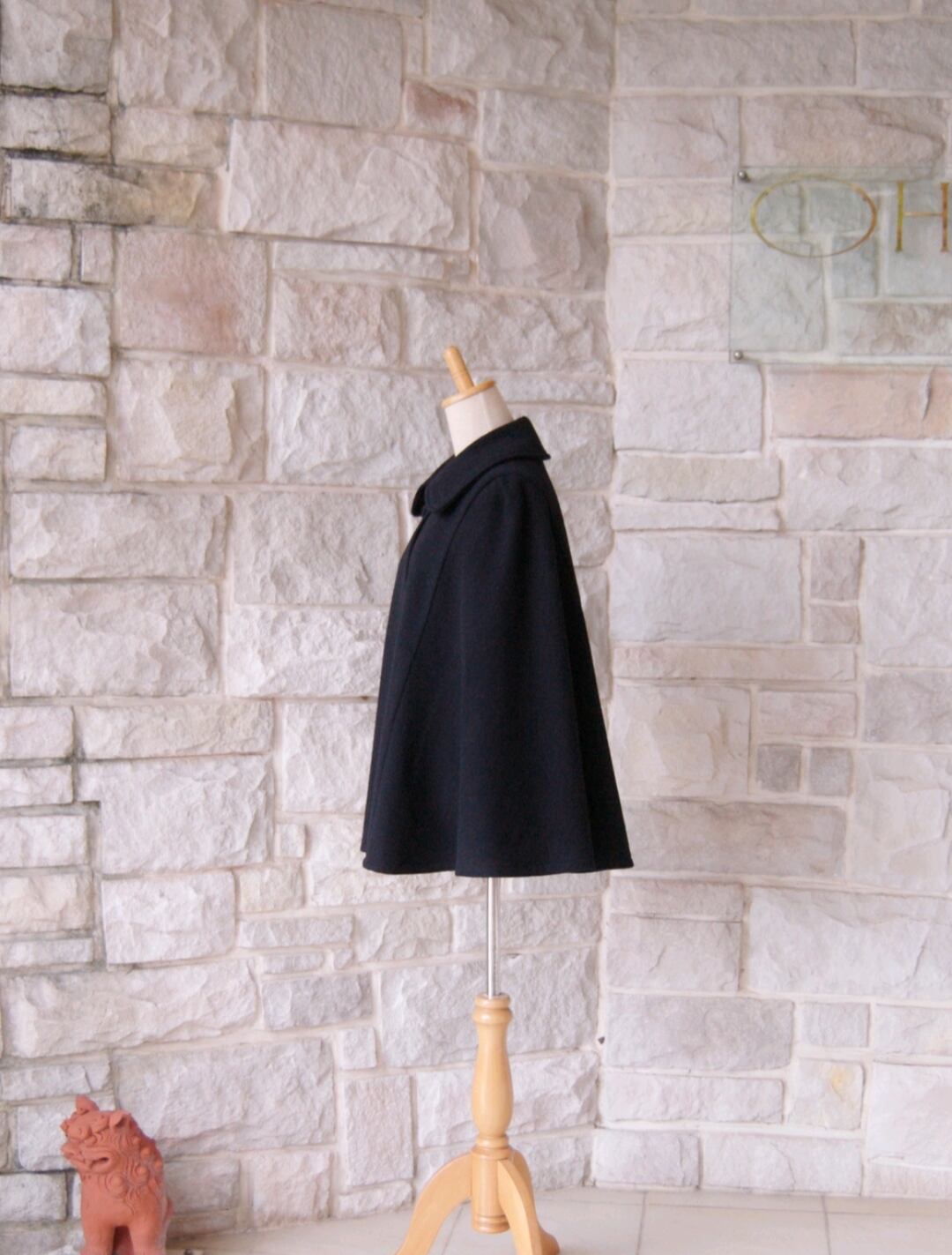 張りのある、しっかりとした『ザ・コート生地!』と感じる生地を使ってケープコートをお仕立てしました。