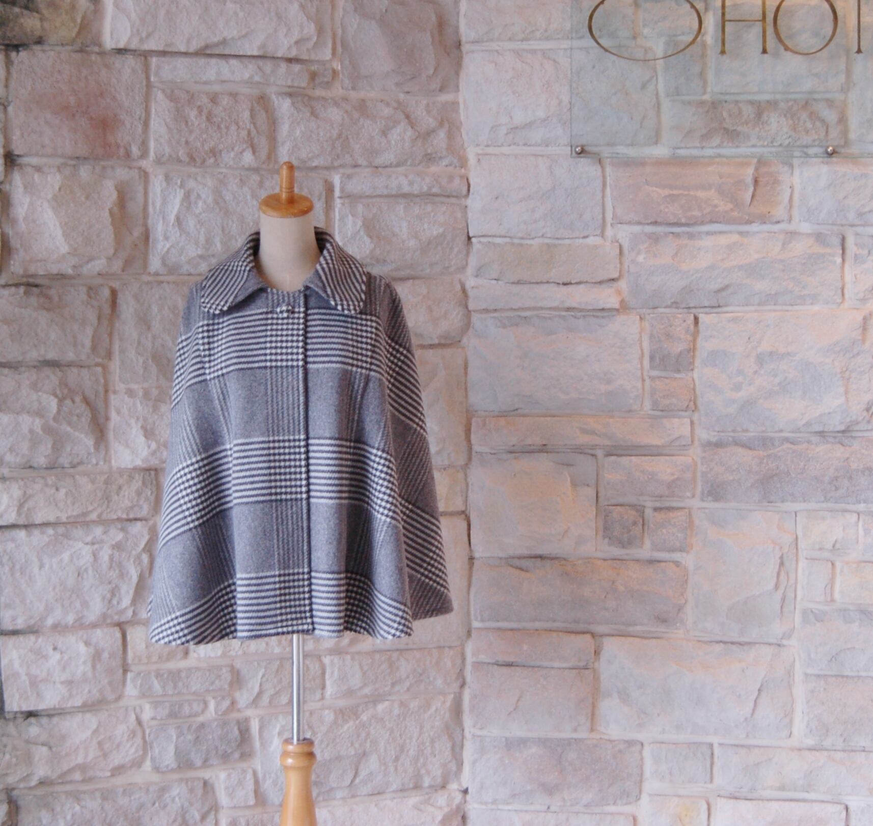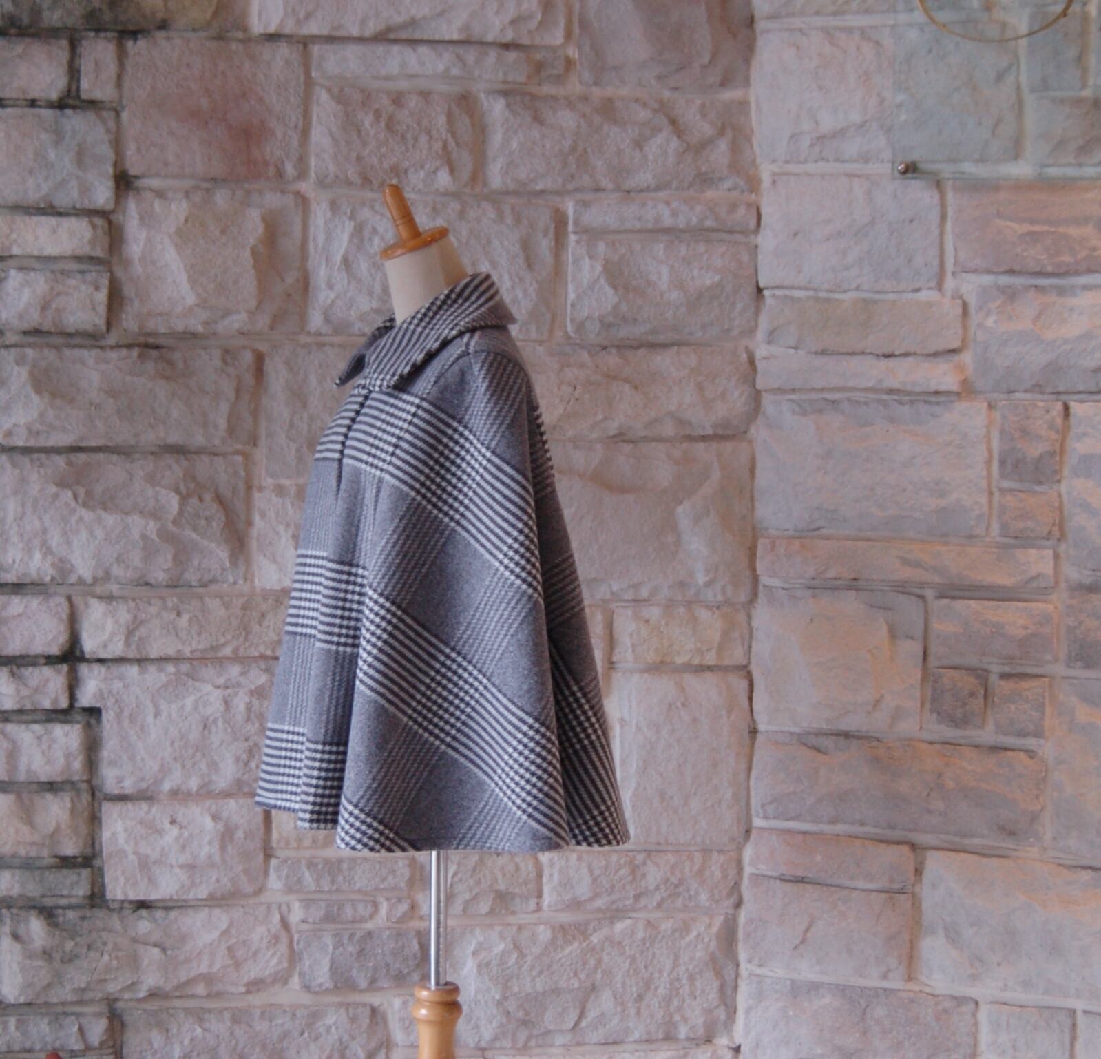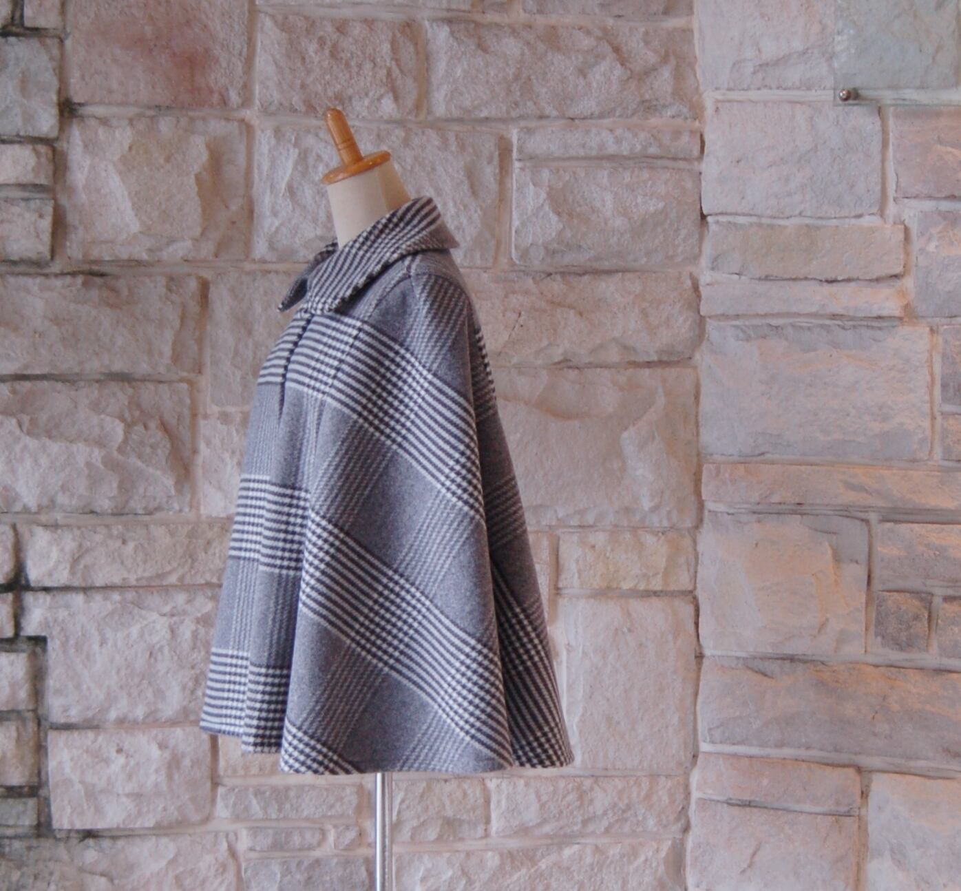 【 ケープコート 】グレンチェック(千鳥格子) モノトーン クラシカル エレガント ウール100%